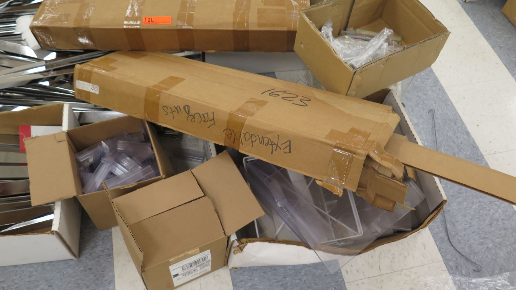 Multiple Boxes Metal & Plastic Rack Parts, Rails, Face Outs