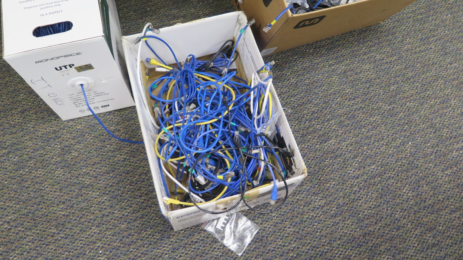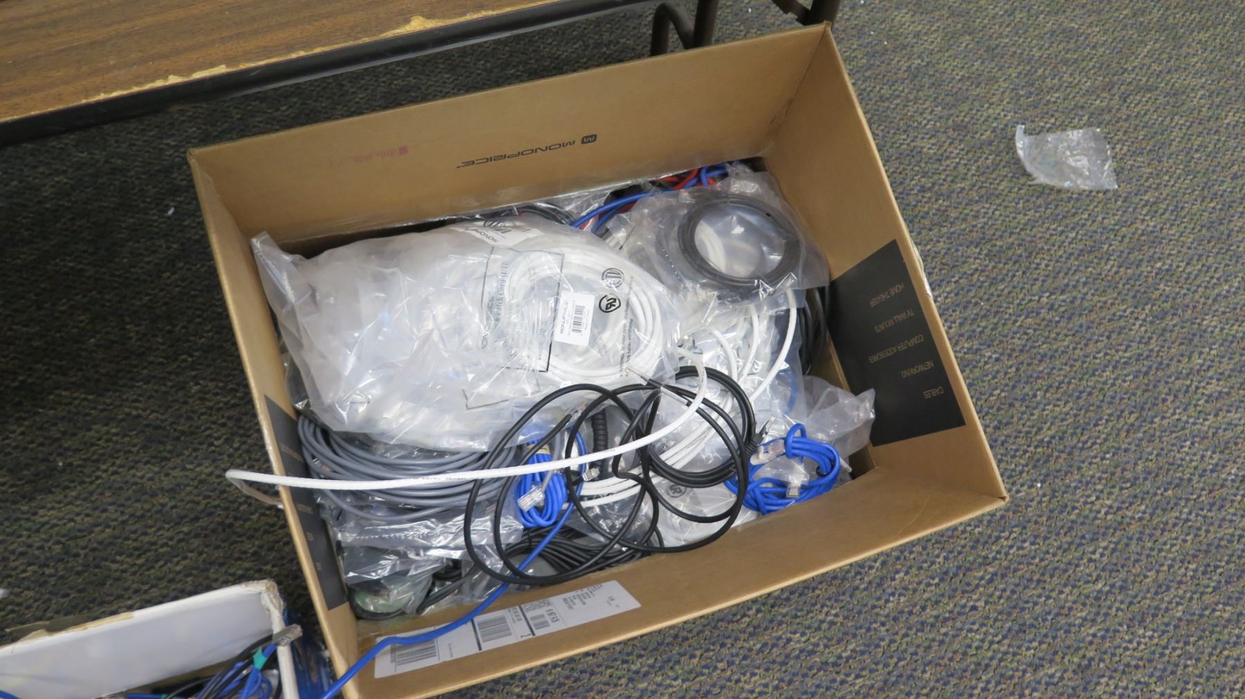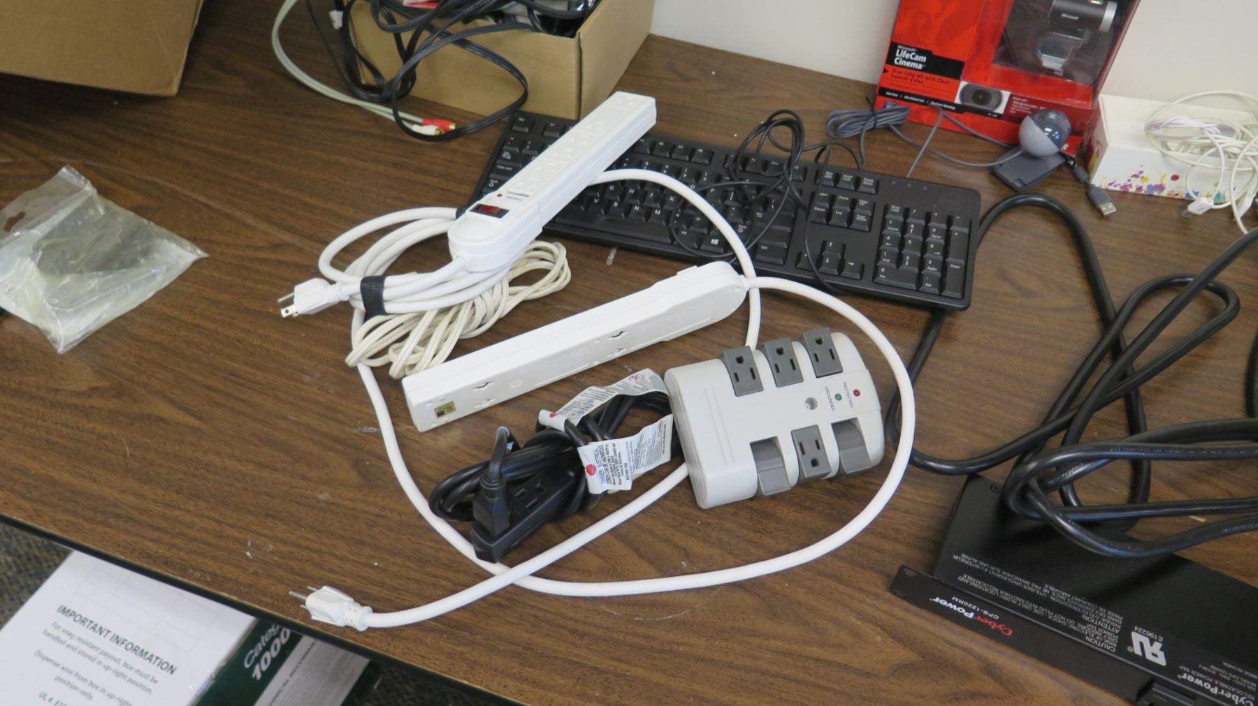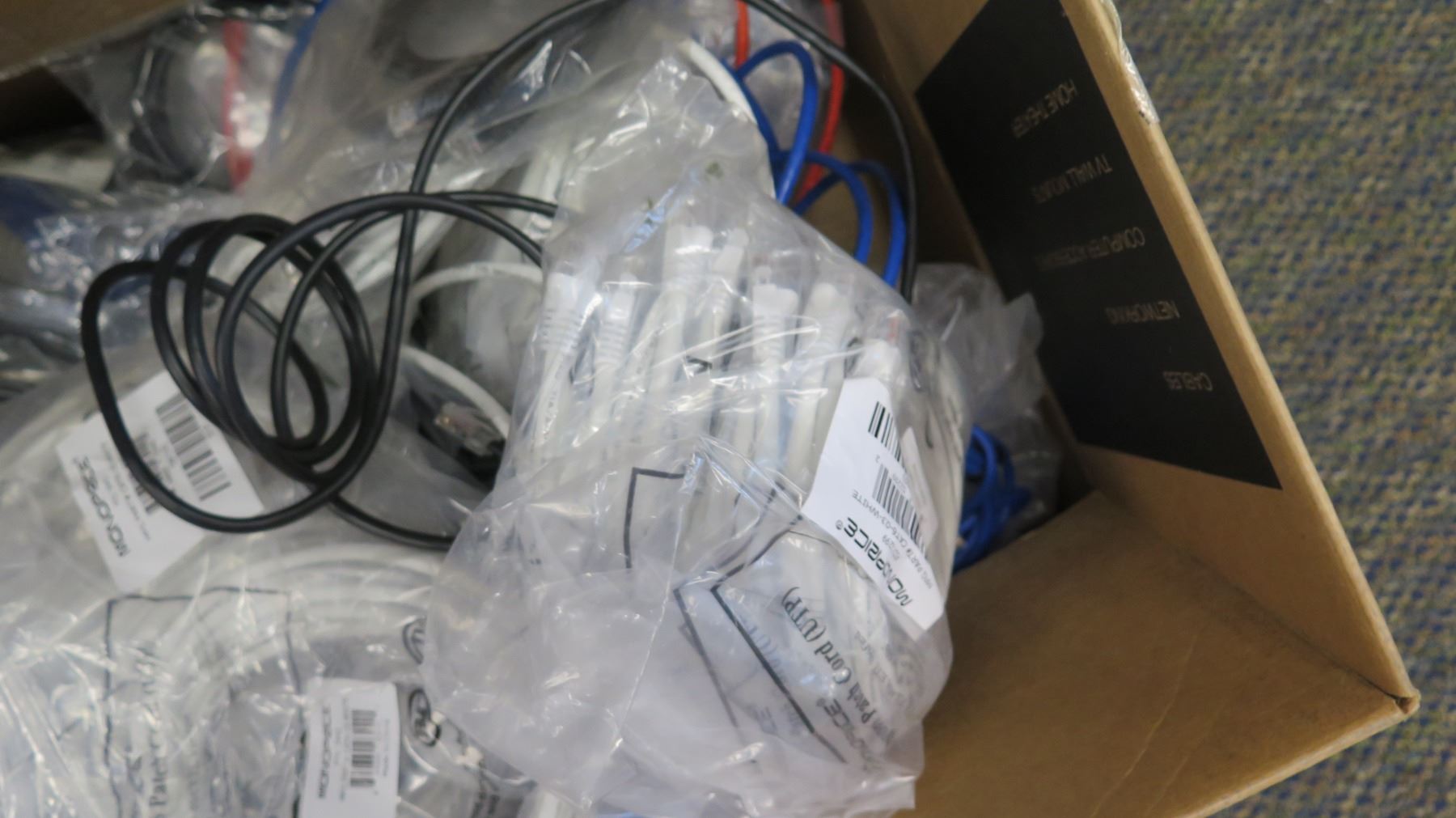 Multiple Boxes Misc Cords & Wire, CyberPower CPS-1220RM PDU, LifeLite Camera, etc