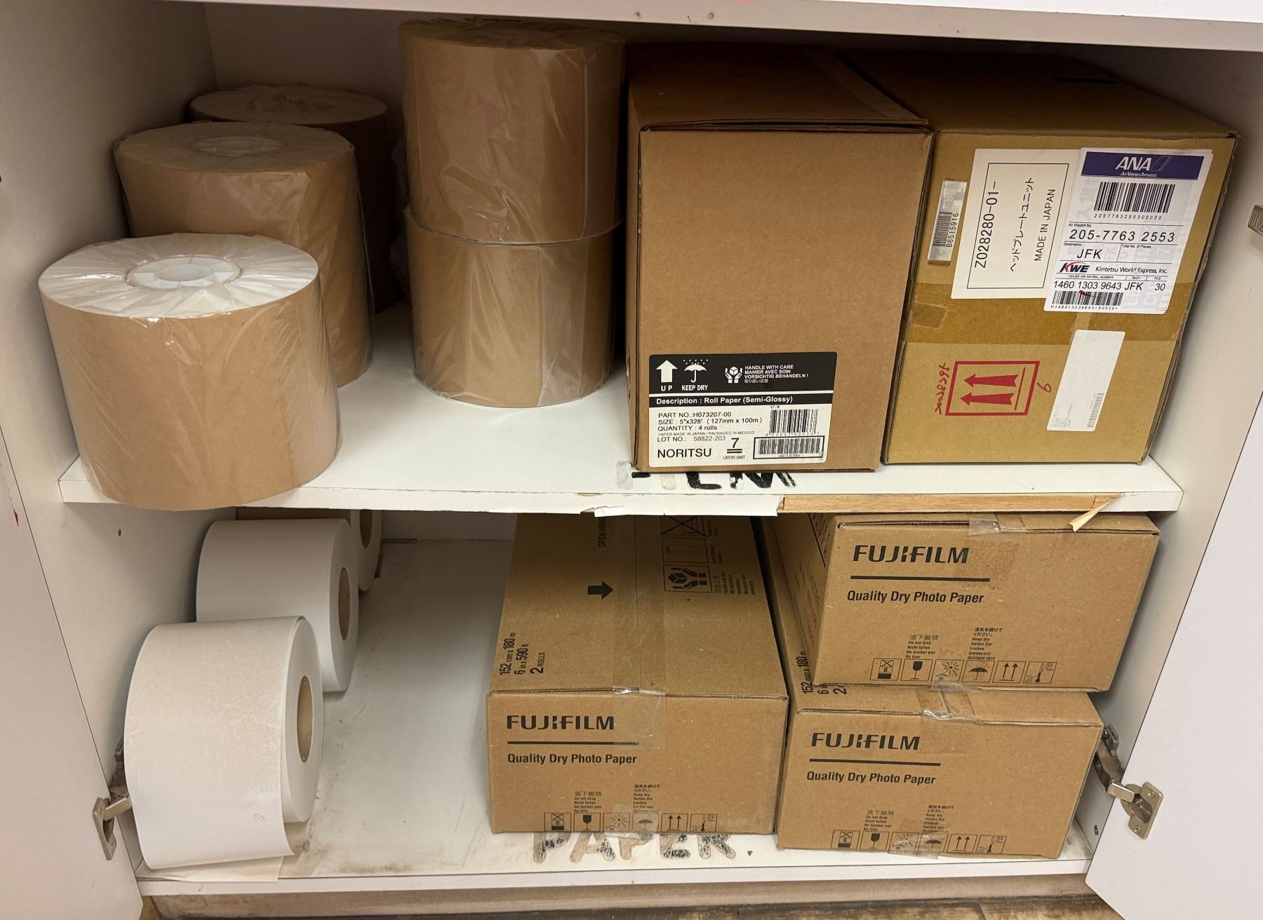 Multiple Boxes Paper Rolls, Fujifilm Photo Paper, etc