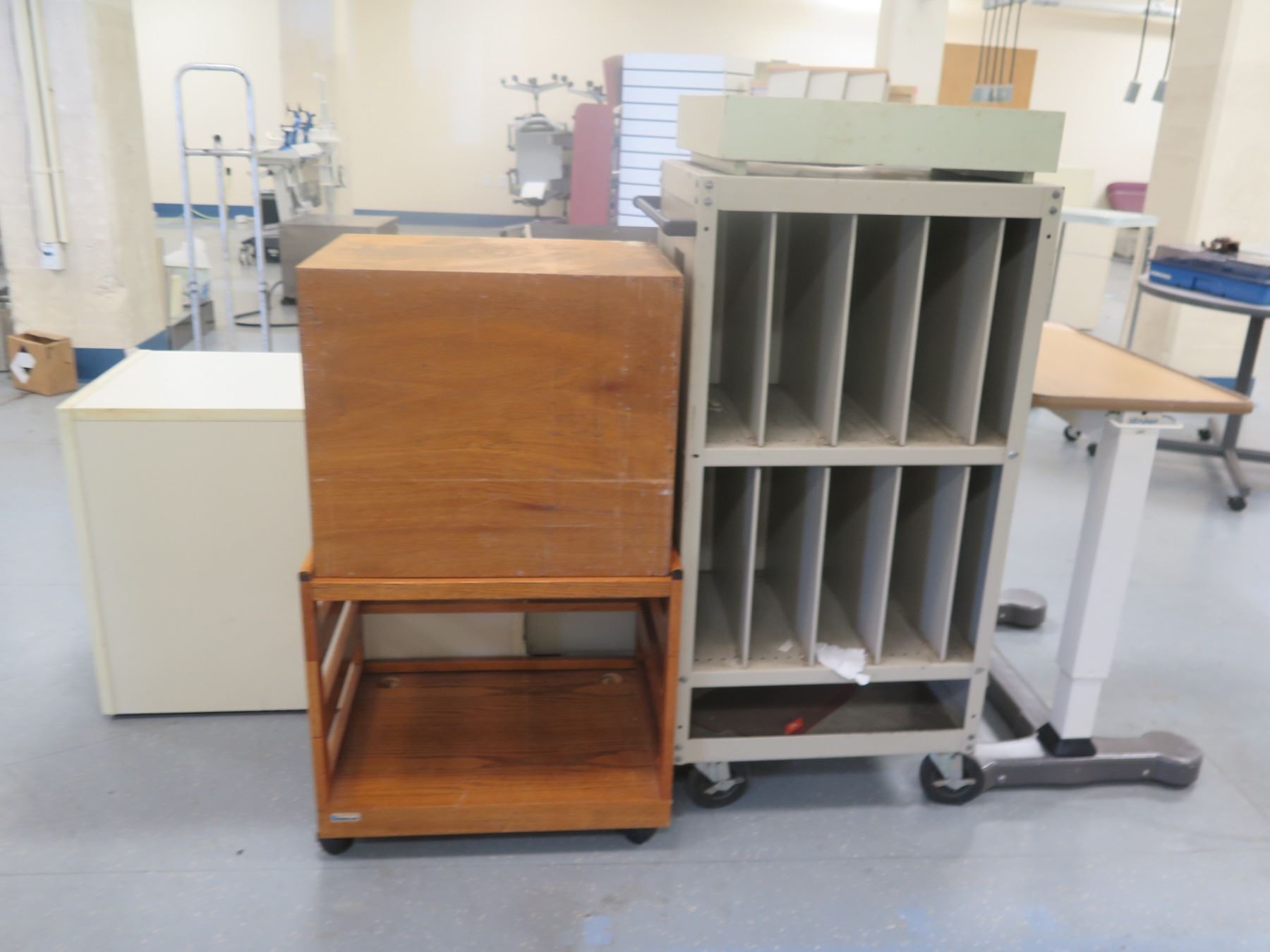 Multiple Cabinets: Stryker Medical Lift Table, Lateral 2-Drawer File, Rolling Sorter, Cart, etc