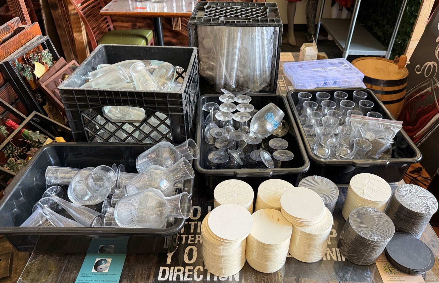 Multiple Carafes, Glassware, Plastic Glasses, Trays, etc Misc Sizes
