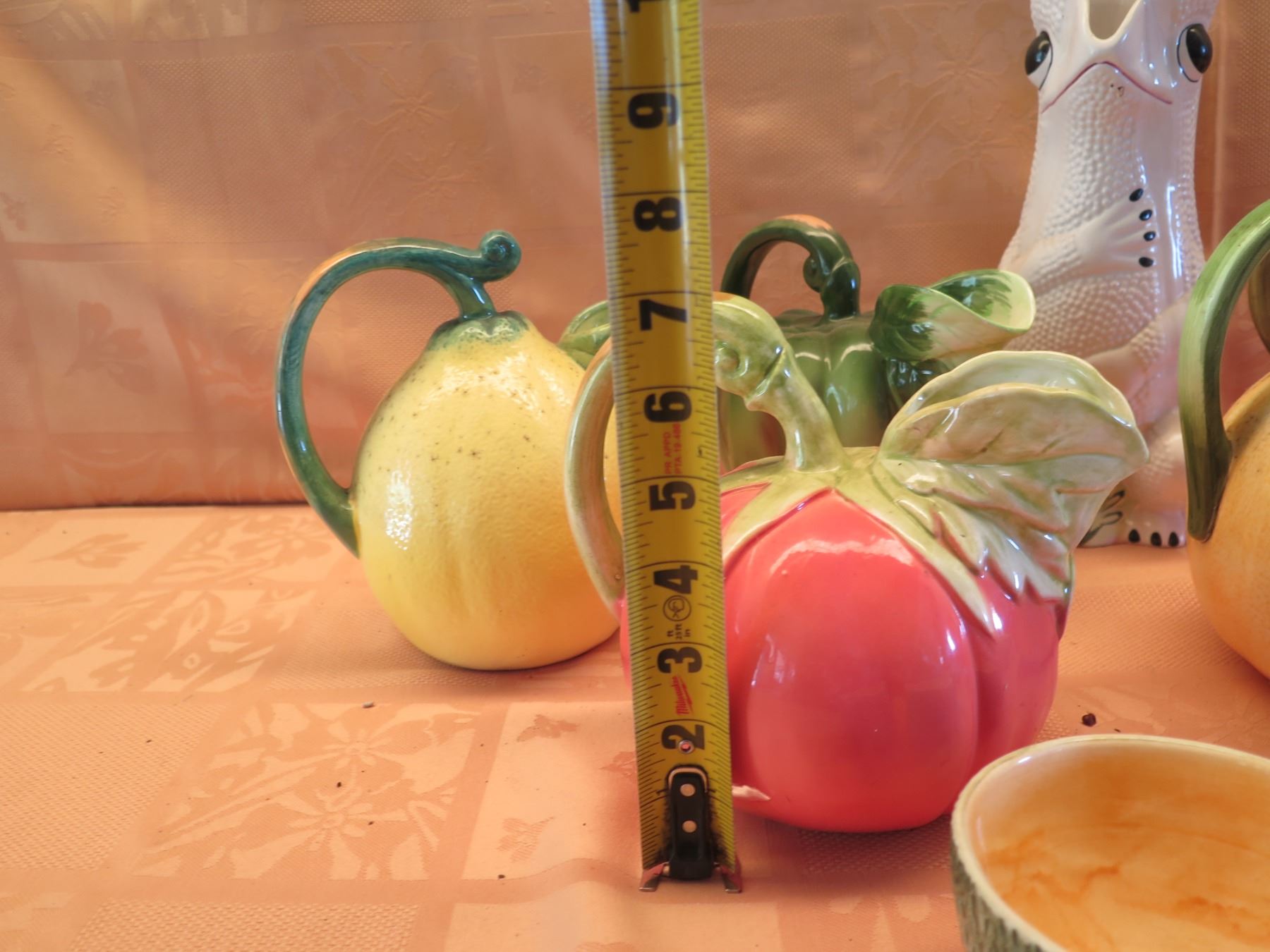 Multiple Ceramic Kitchen Décor: Fruit Tea Pots, Frog Pitcher, 3 Bowls