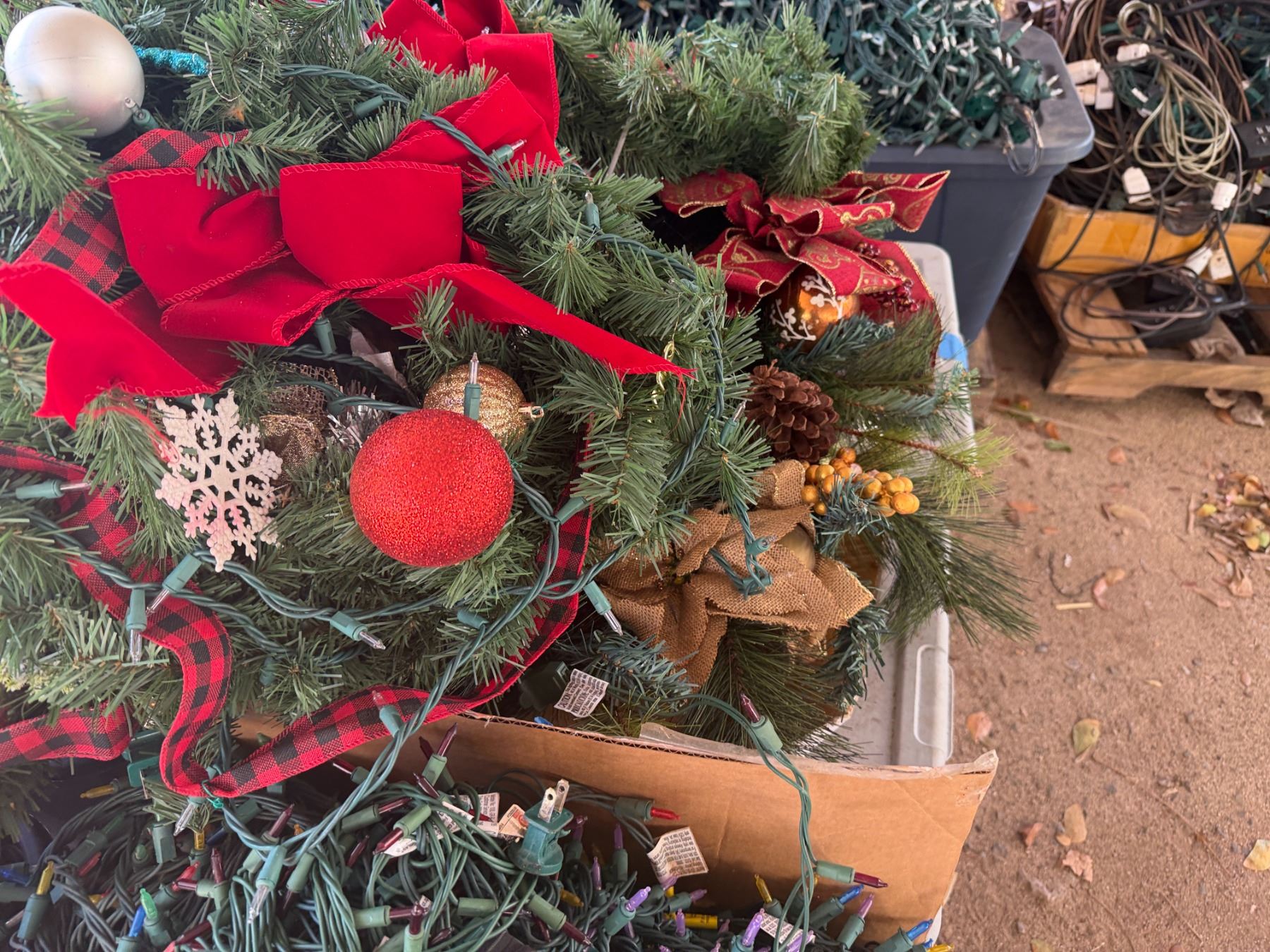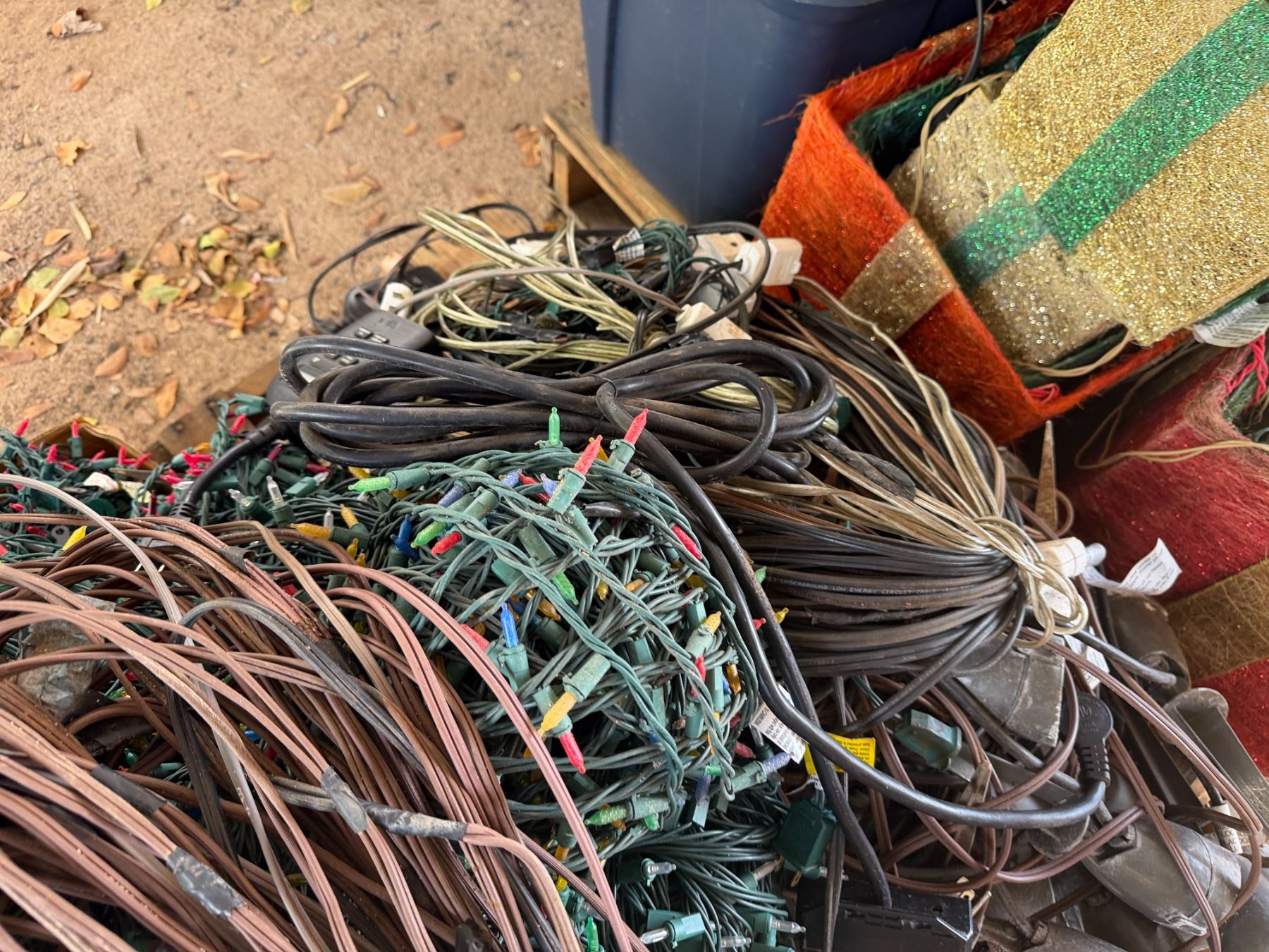 Multiple Christmas Décor: Lights Cords, Gift Boxes, Wreaths, Candy Canes, etc