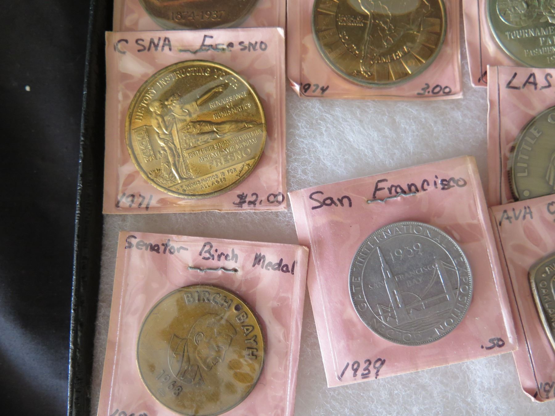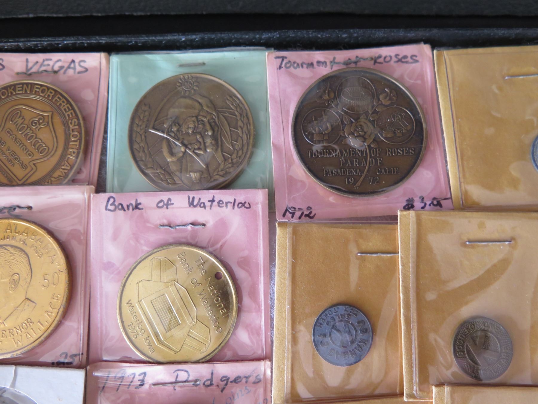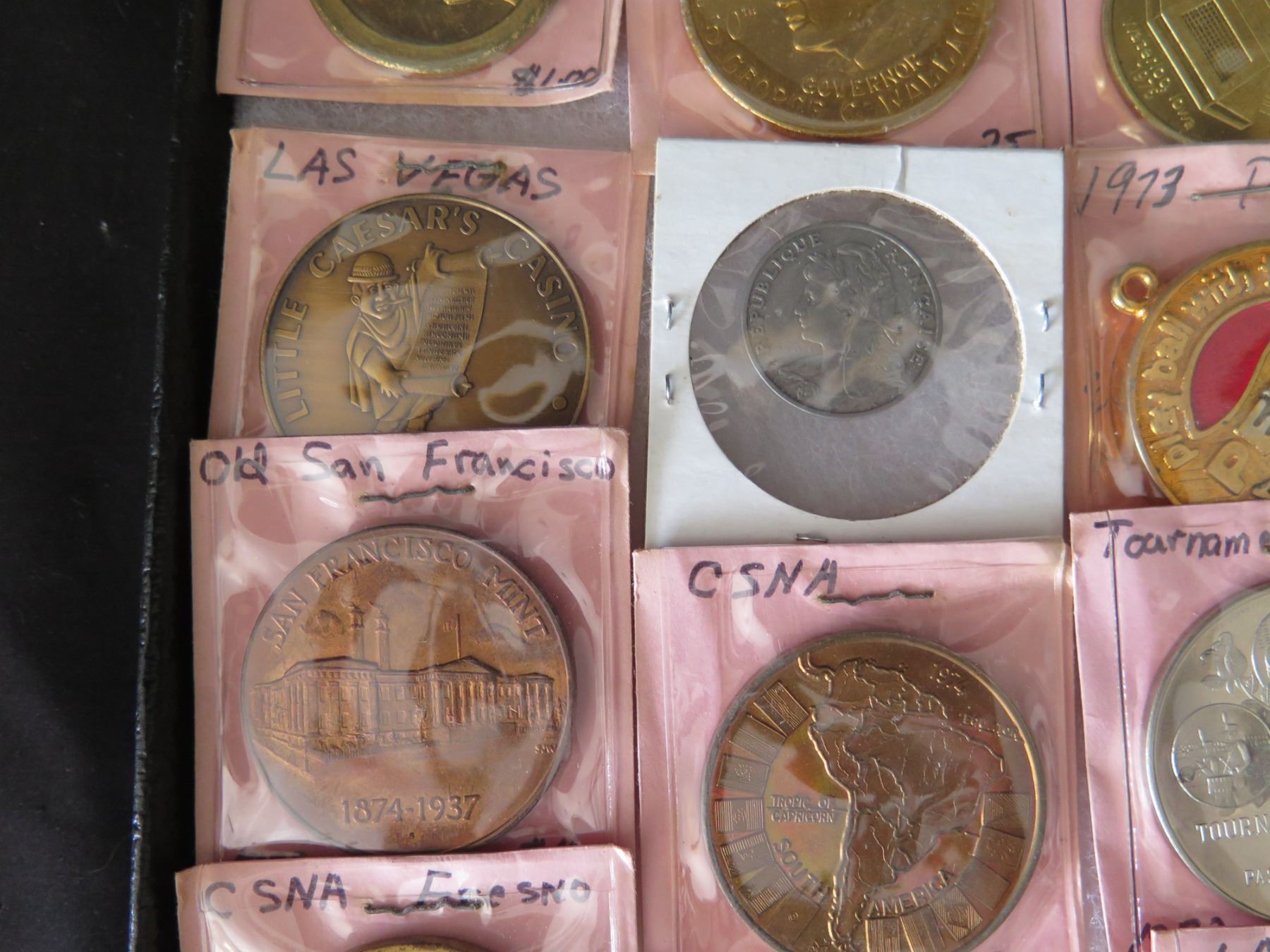 Multiple Coins in Paper Flips: Las Vegas, Wallace, San Francisco, Tax Token etc in Display Case 16"L
