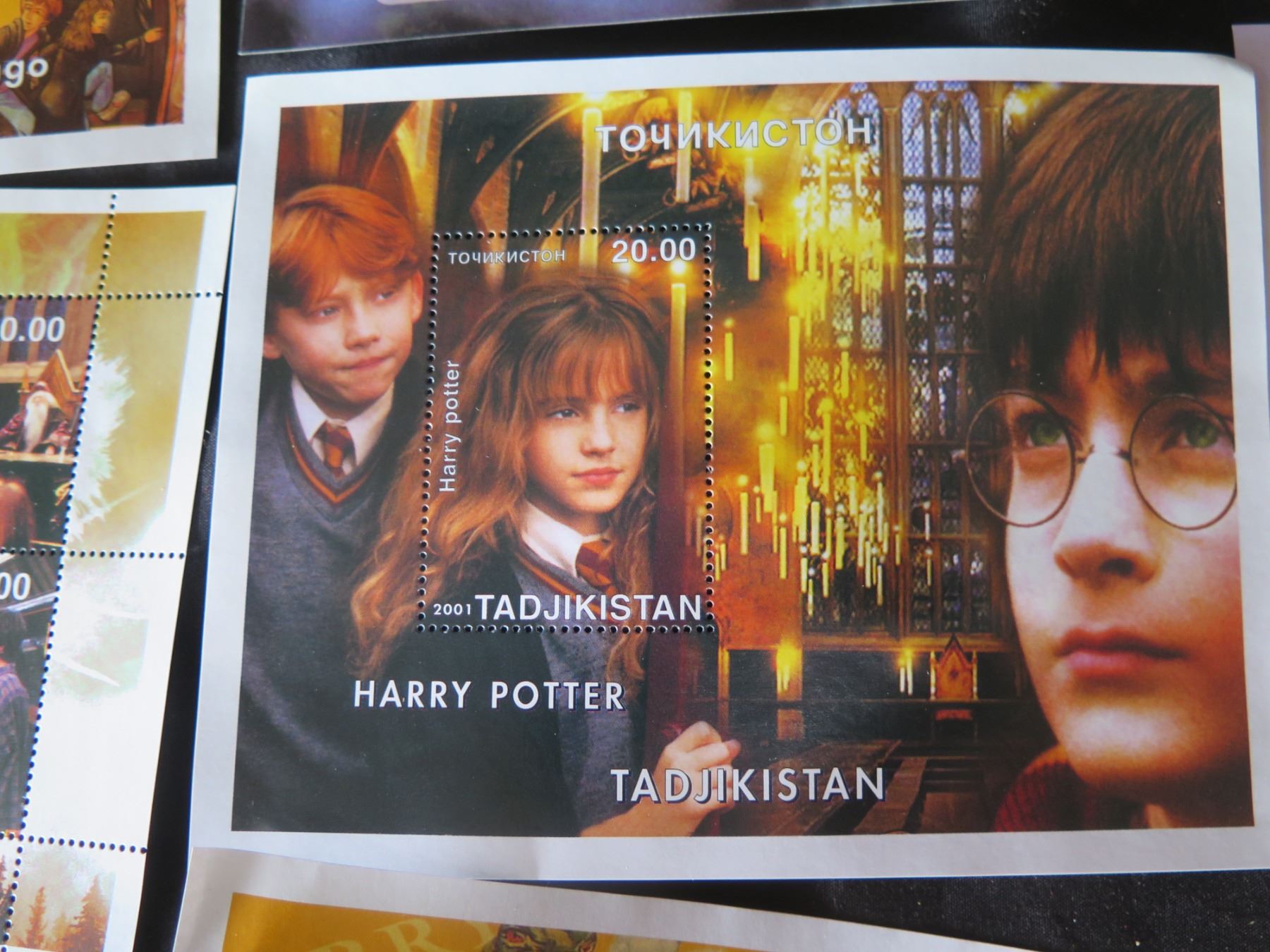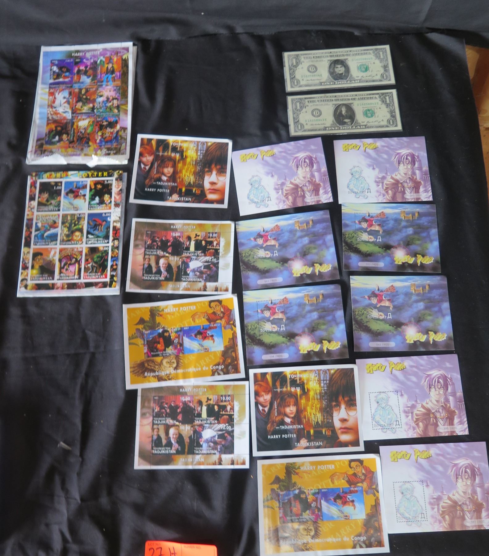 Multiple Collectible Harry Potter Worldwide Stamps in Postcards, Character Money, etc