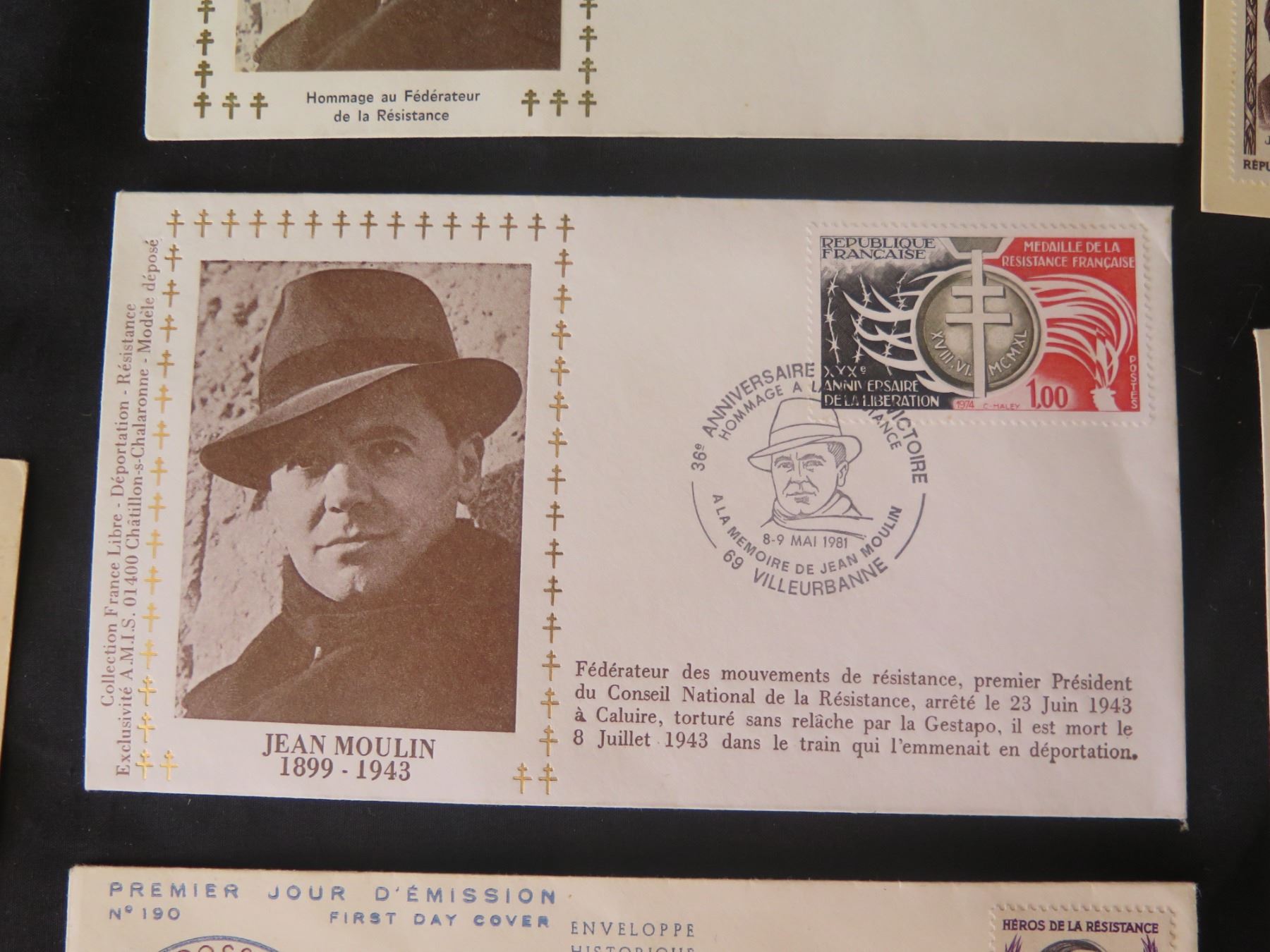 Multiple Collectible Post Cards French Resistance Jean Moulin Stamped, etc