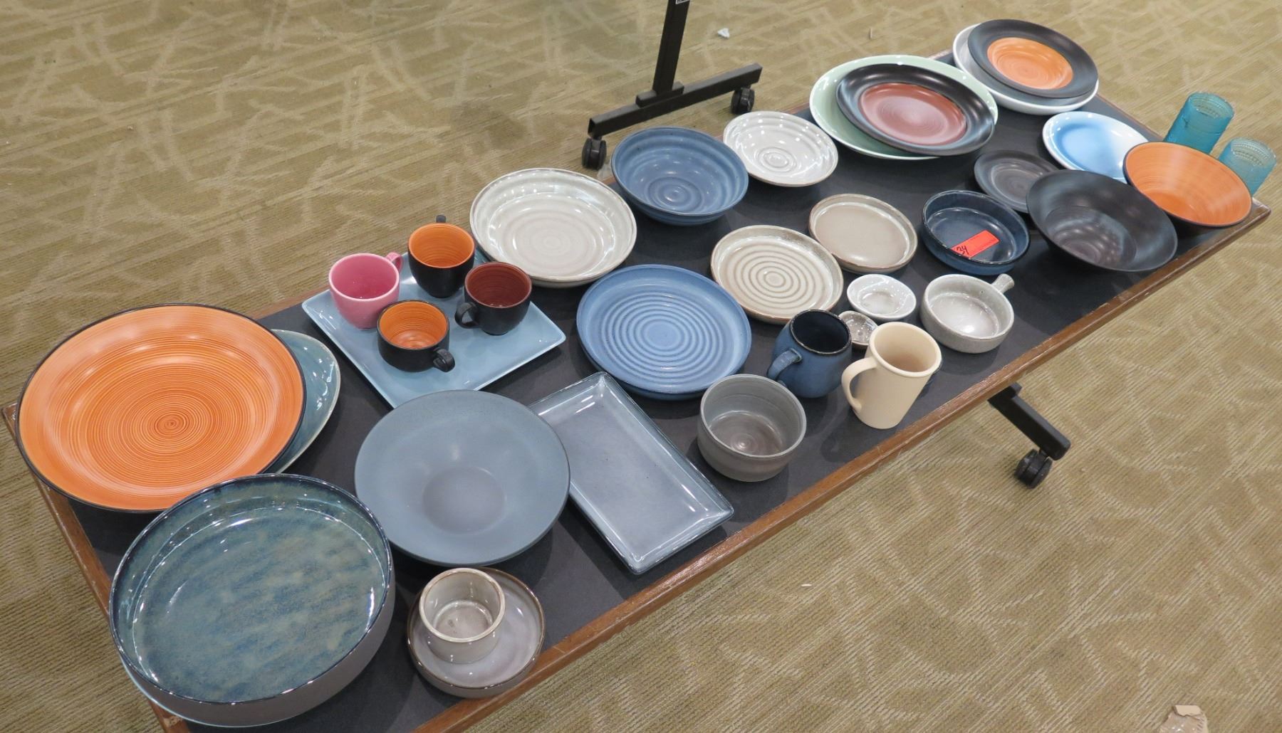 Multiple Colorful Ceramic & Glass Bowls, Plates, Glasses, Mugs, etc Misc Size. Winning Bidder needs to bring boxes to pack and transport