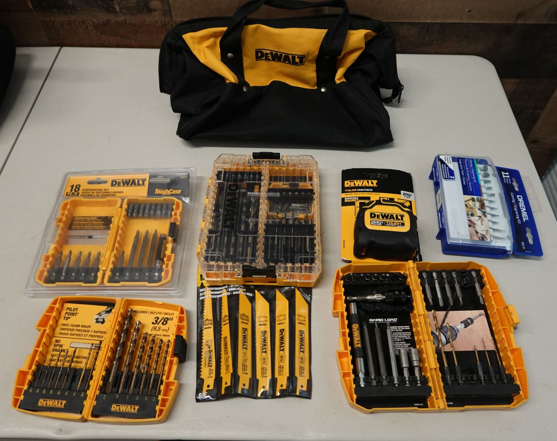 Multiple DeWalt Tools & Accessories in Carry Case: Bits, Saw Blades, Dremel Engraving Kit, etc