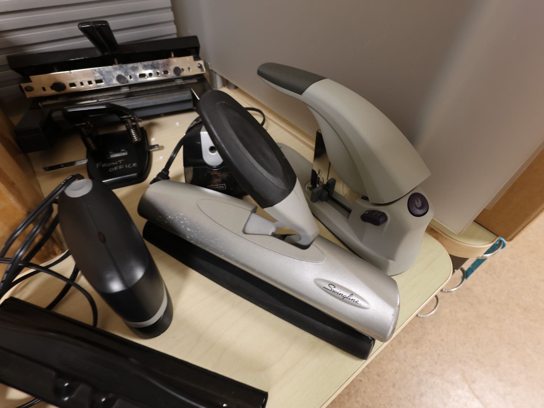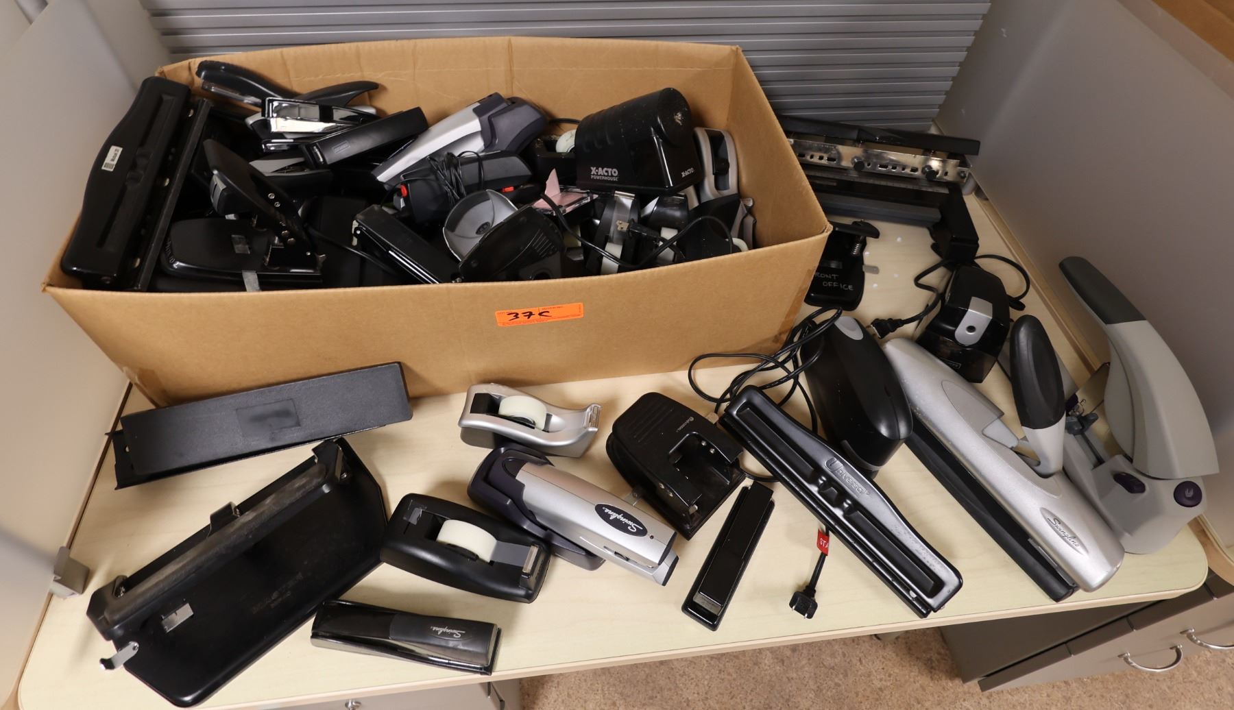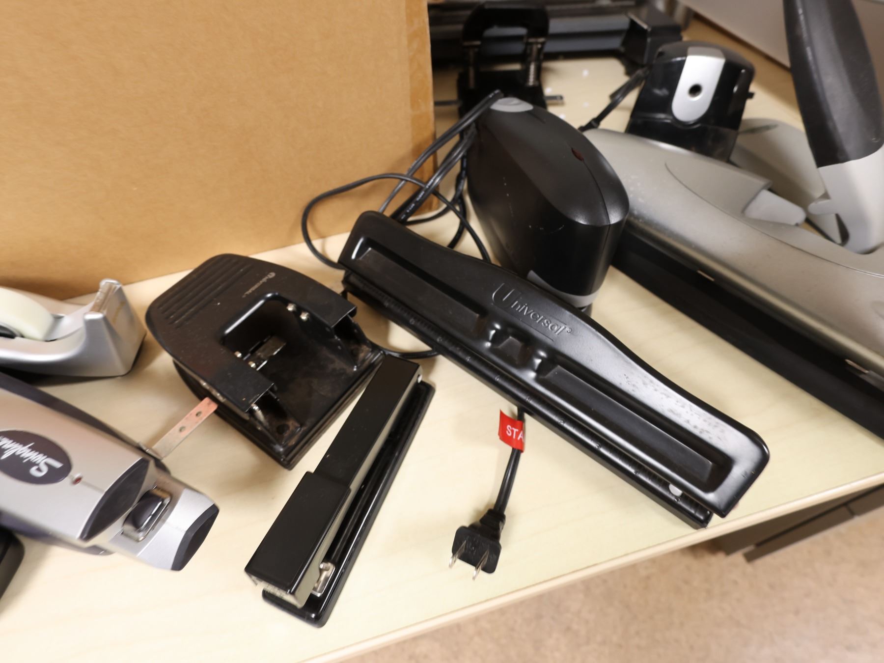Multiple Desk Accessories: Hole Punches, Staplers, Tape Dispensers, Pencil Sharpeners, etc