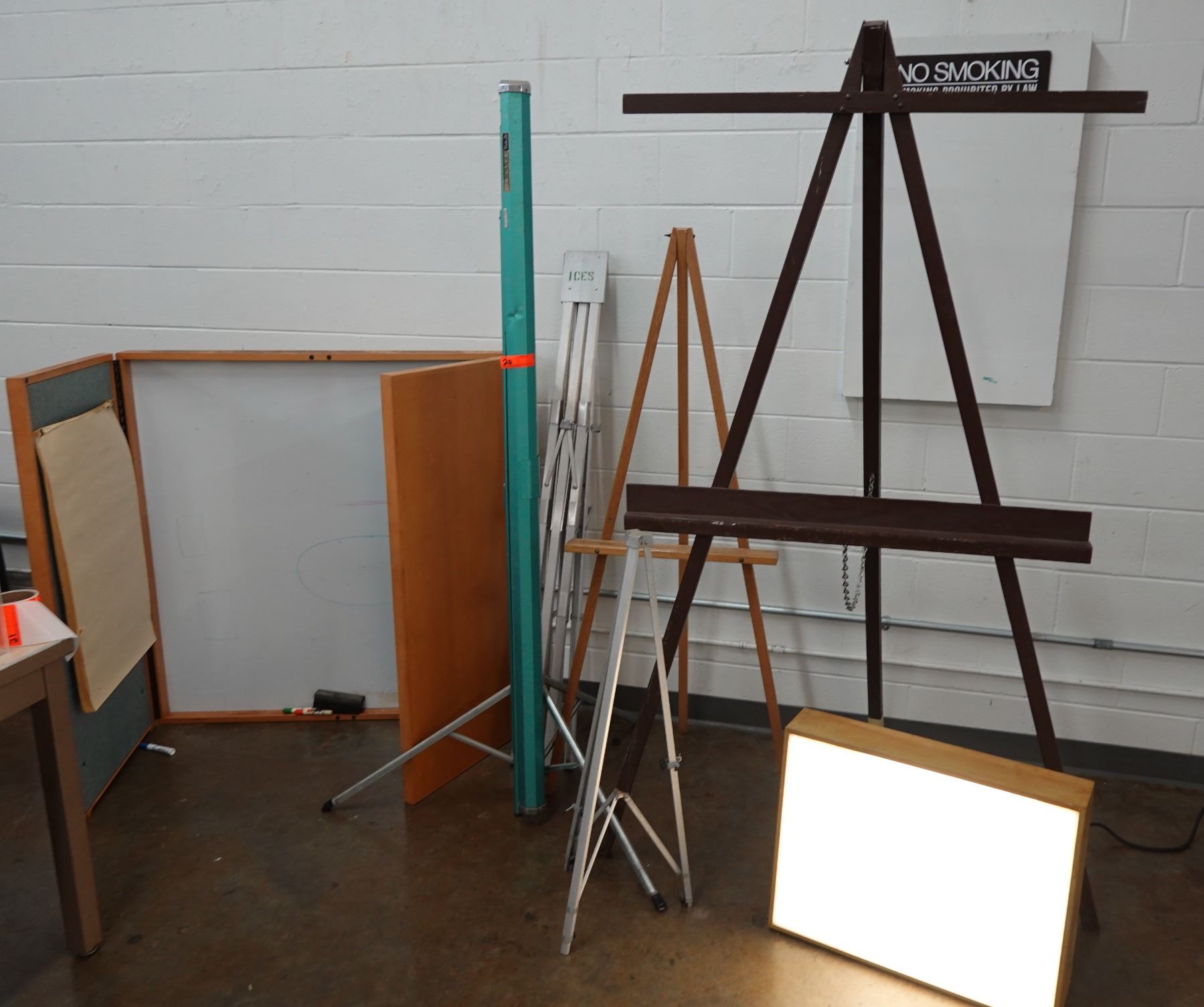 Multiple Easels, Projector Screen & White Board Cabinet, Misc Sizes