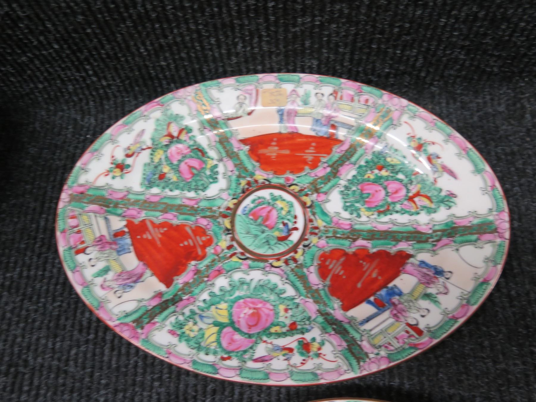 Multiple Famille Rose Plates & Oval Platters w/ Maker's Marks, Misc Sizes