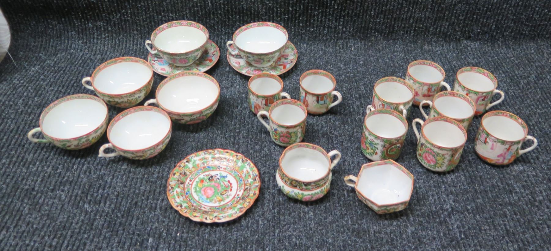 Multiple Famille Rose Teacups, Coffee Mugs, Plates (some Maker's Marks), Misc Sizes