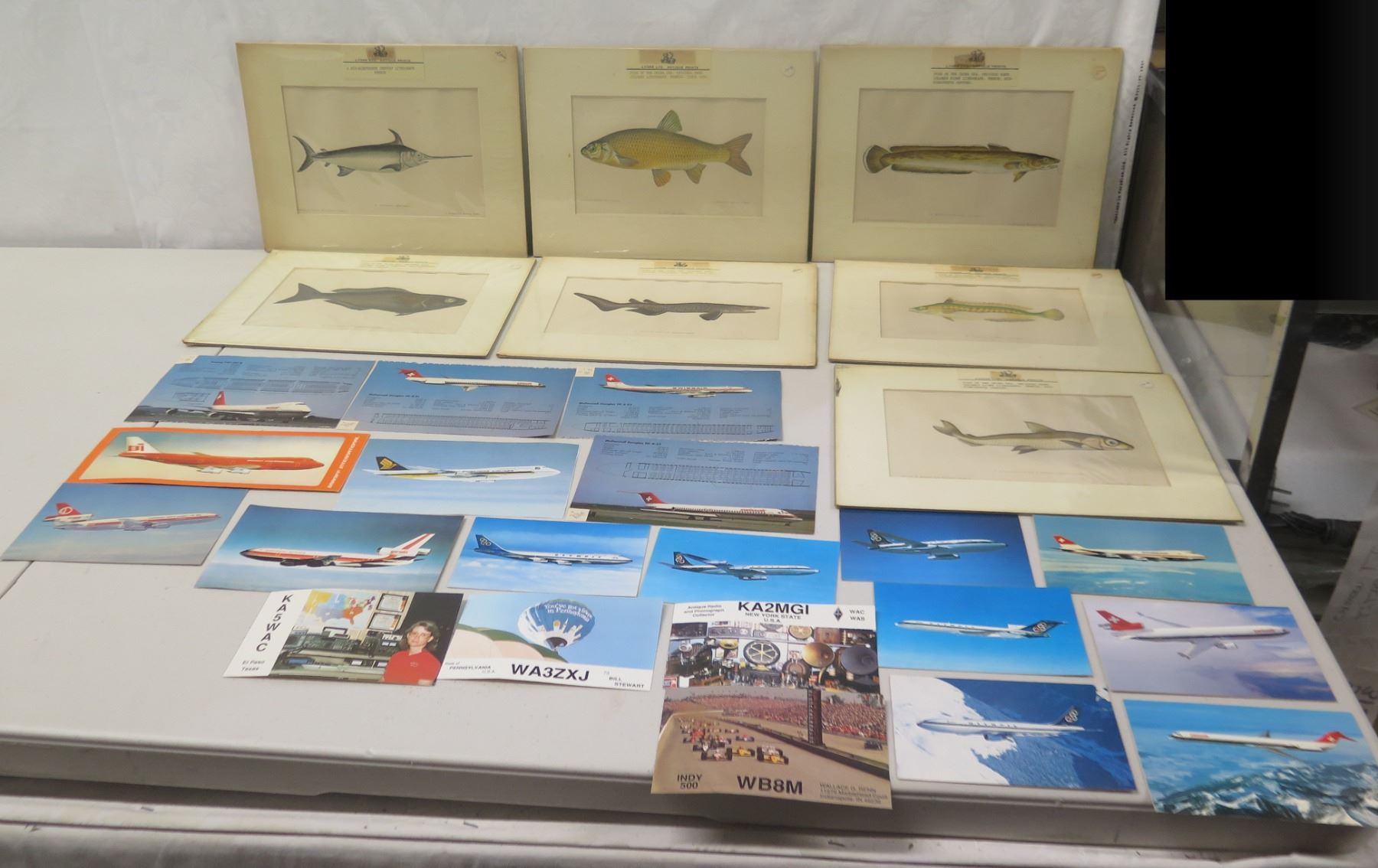 Multiple Fish Unframed Artwork, Airplane Photos, Balloon Postcards, etc