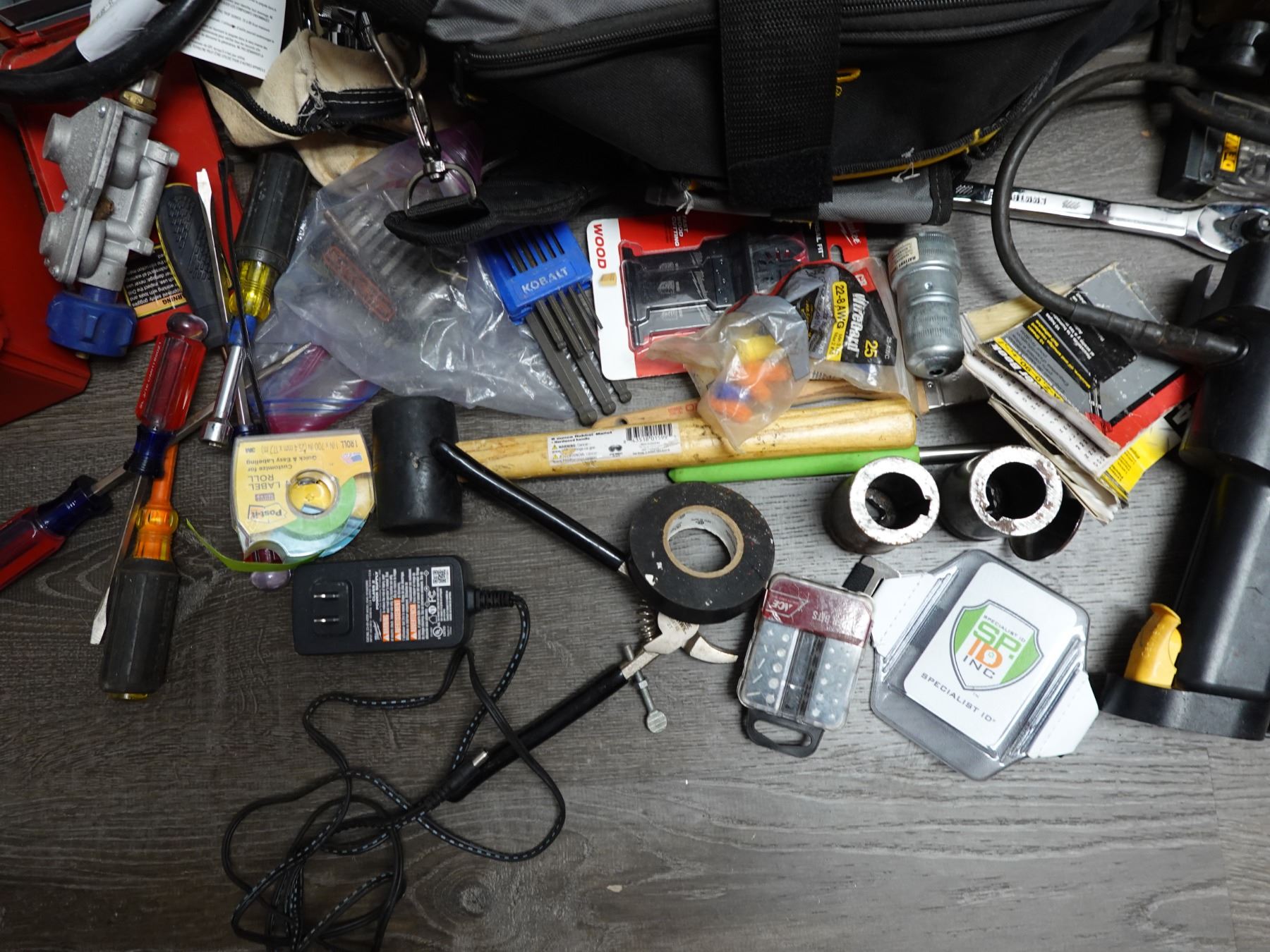 Multiple Hand Tools & Bags: Drivers, Hoses, Bits, Tape, Ratchets, Sockets, etc