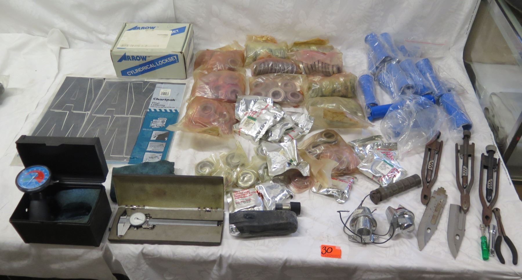 Multiple Hand Tools, Knife Blades, Bearings, Cylindrical Lockset, Vinyl Lettering, etc