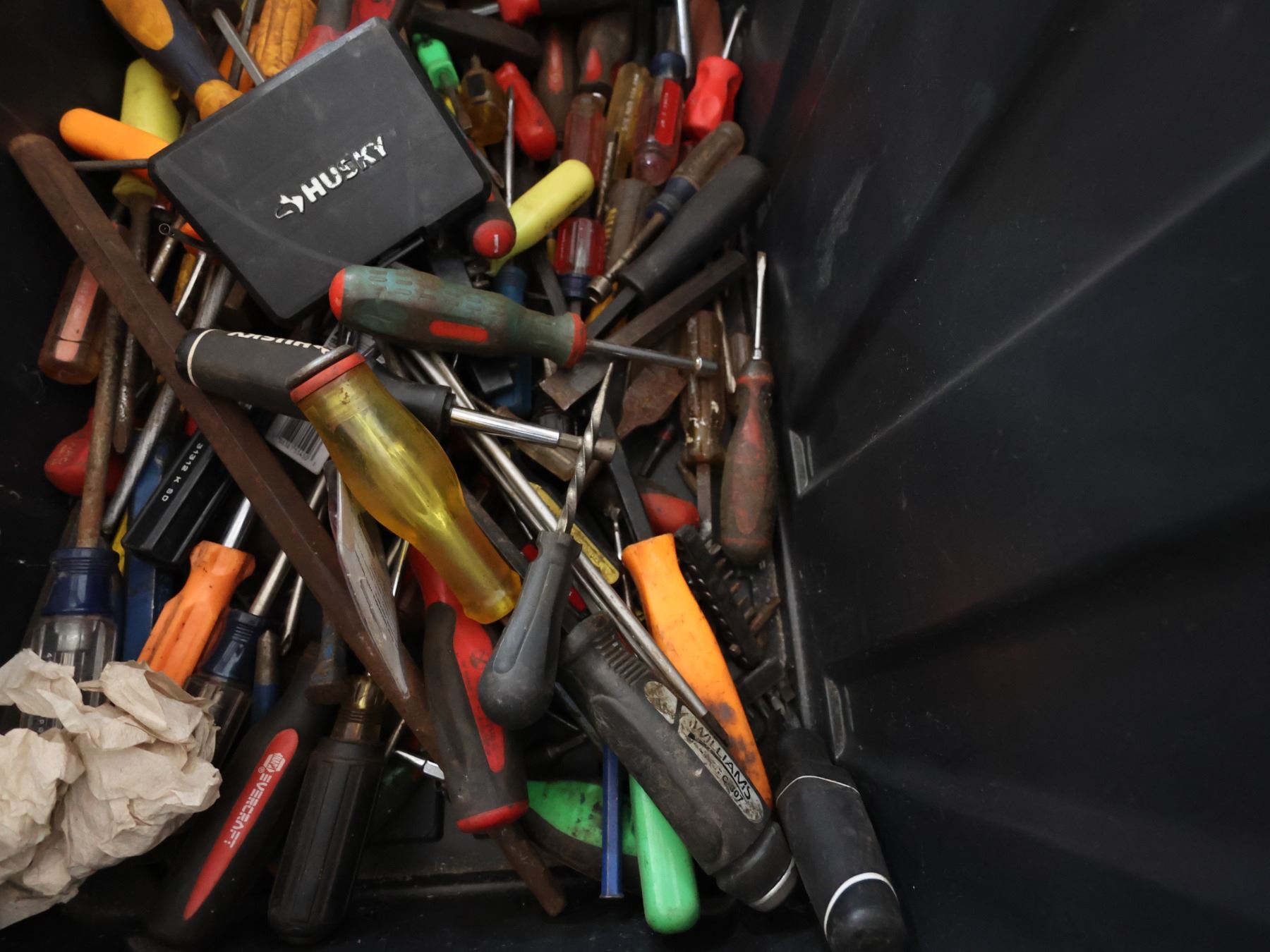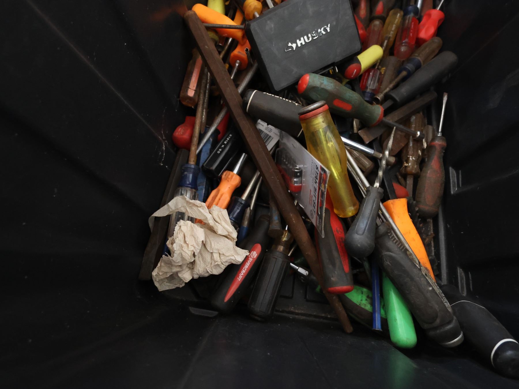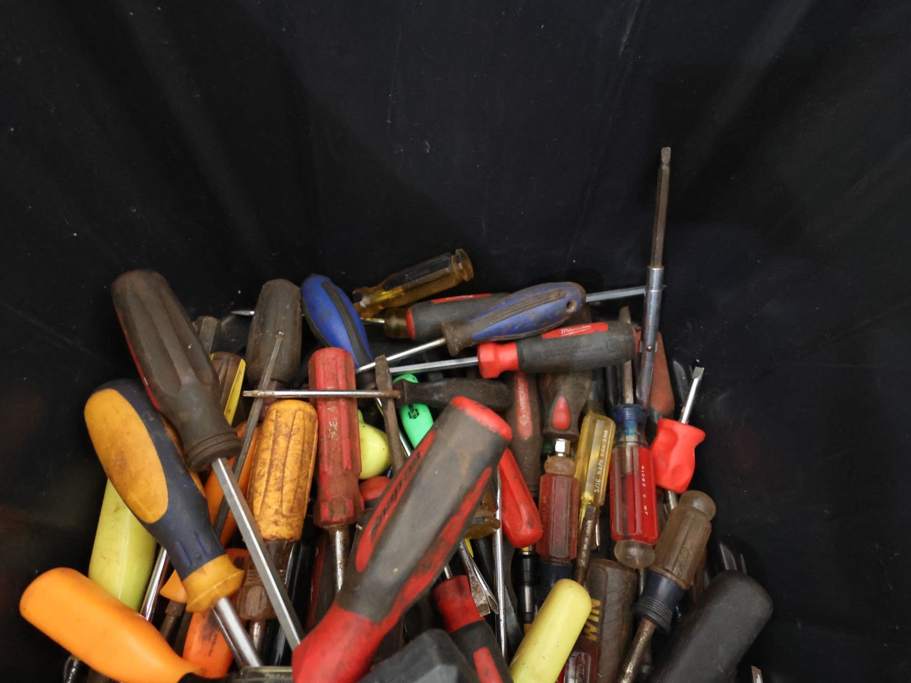Multiple Hand Tools: Screwdrivers, Allen Wrenches, etc in Bin