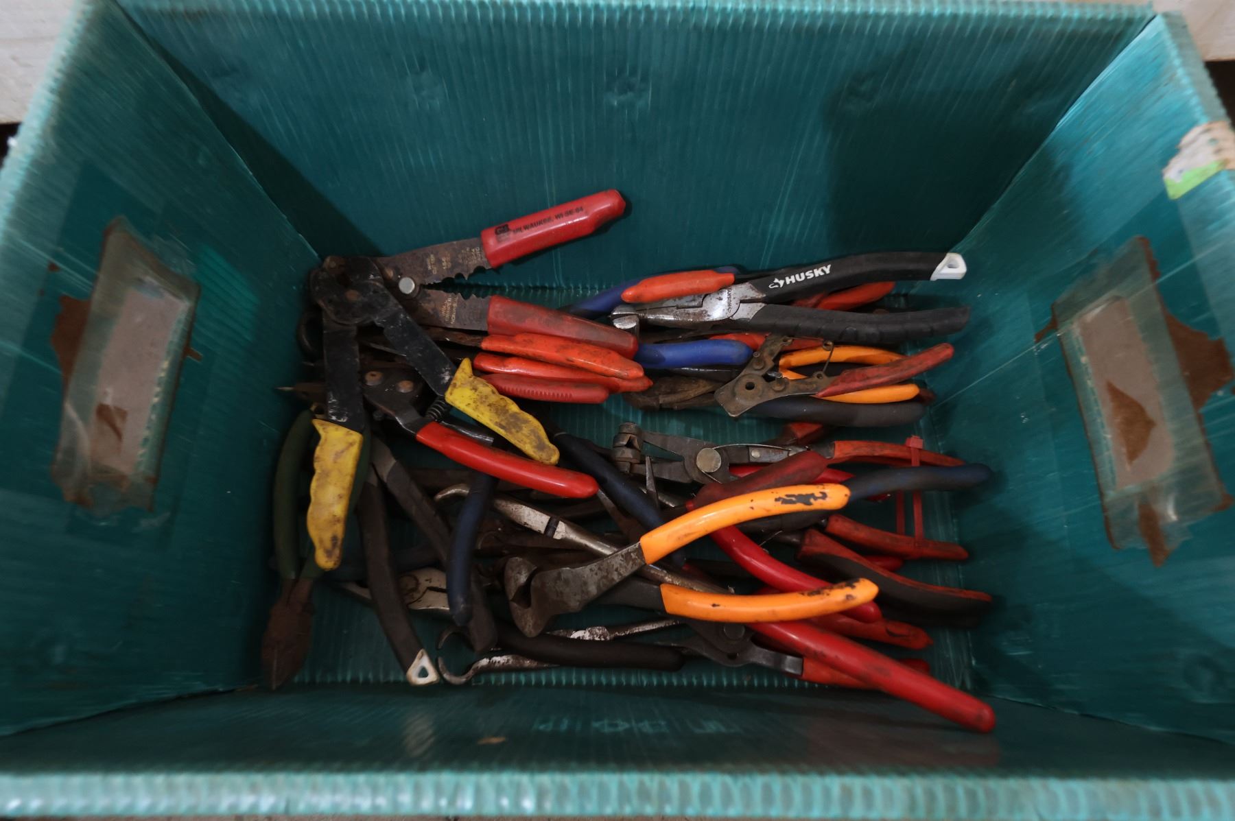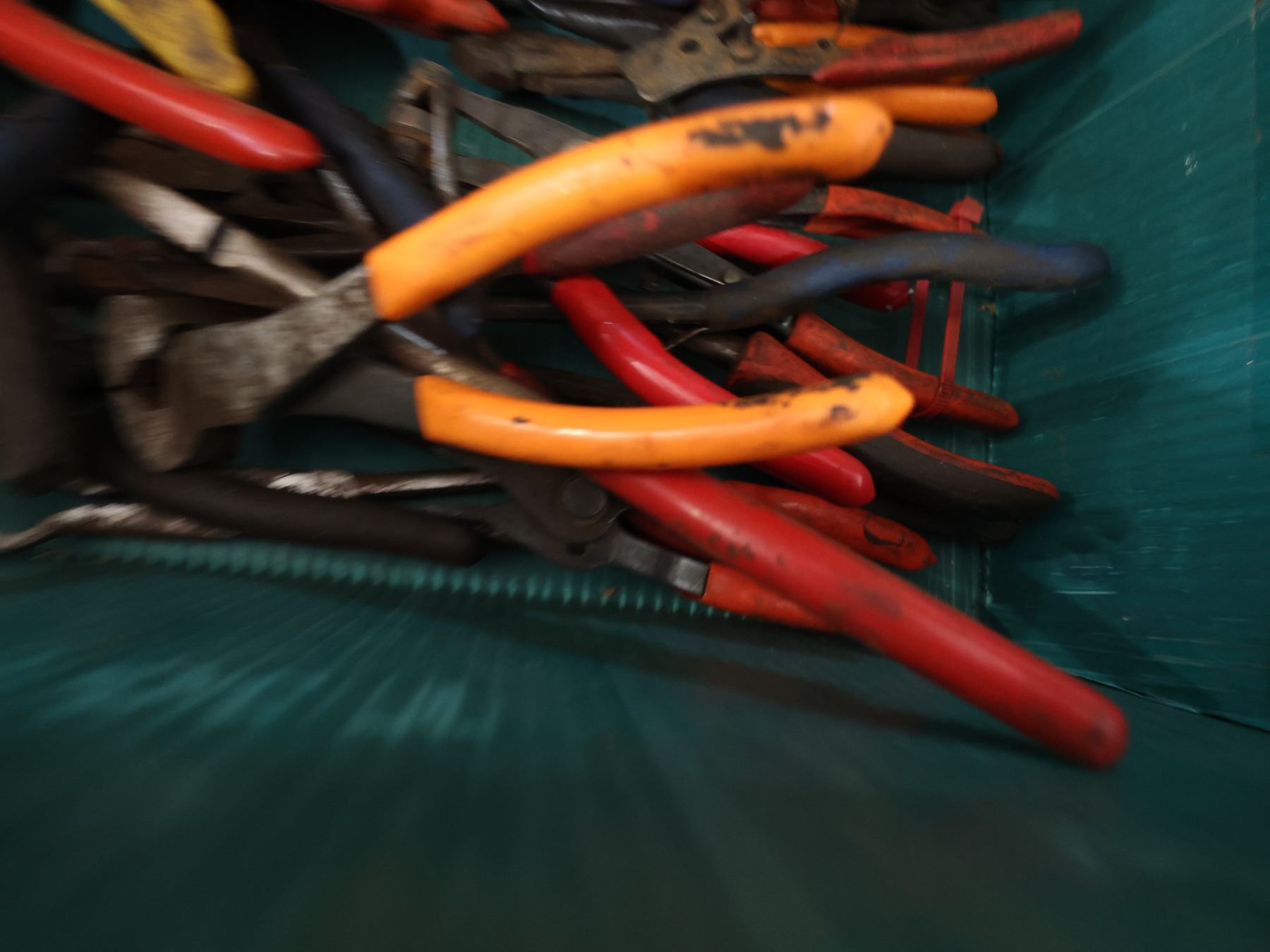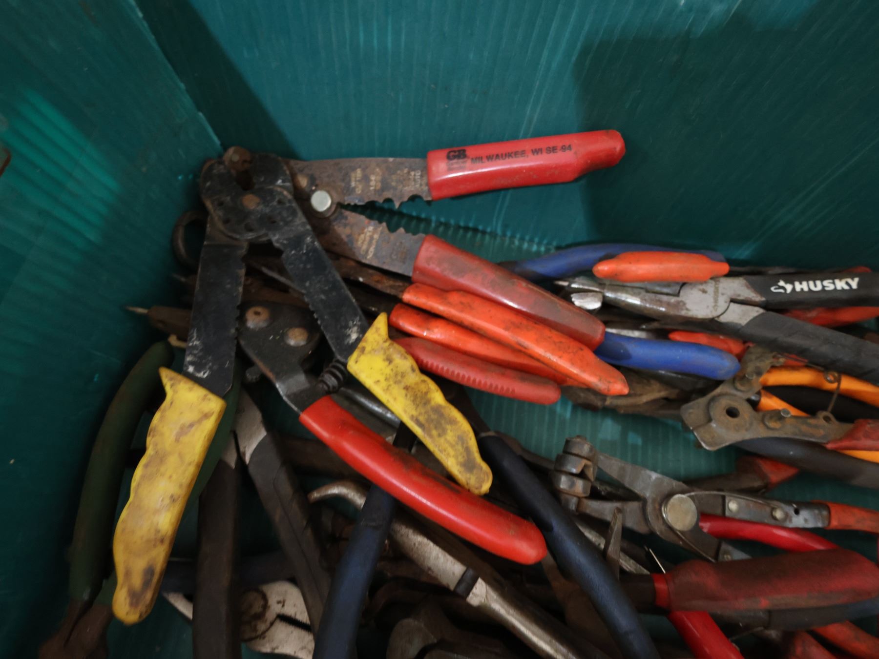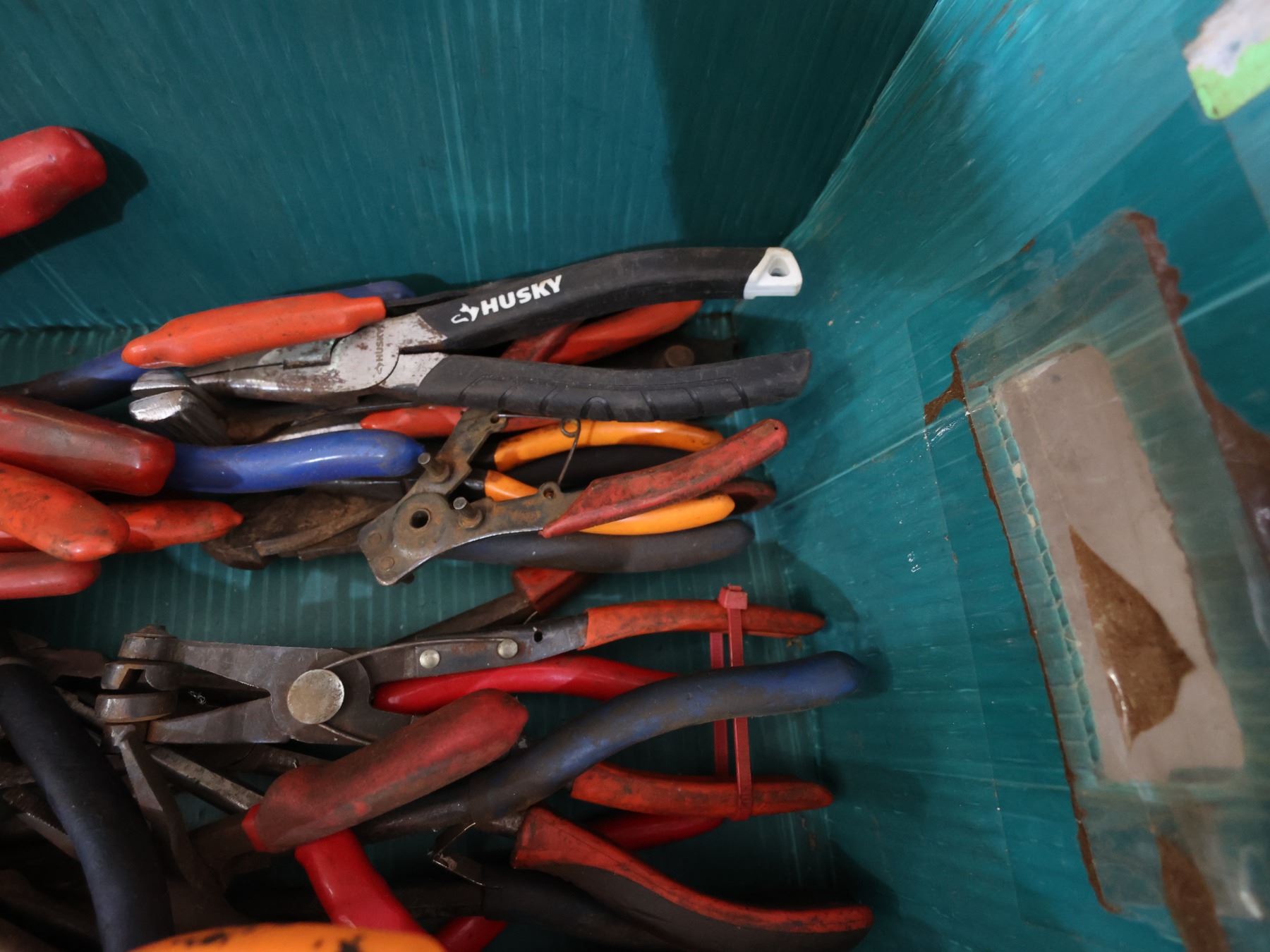 Multiple Hand Tools: Wire Cutters, Pliers, etc in Bin