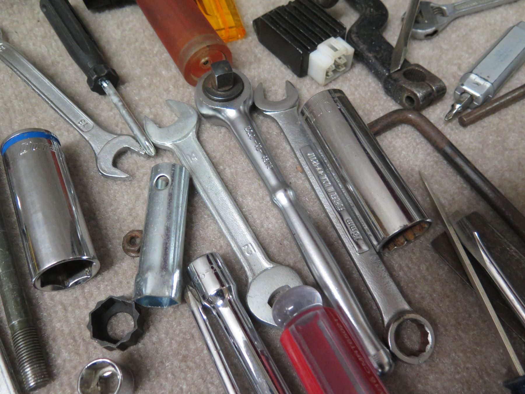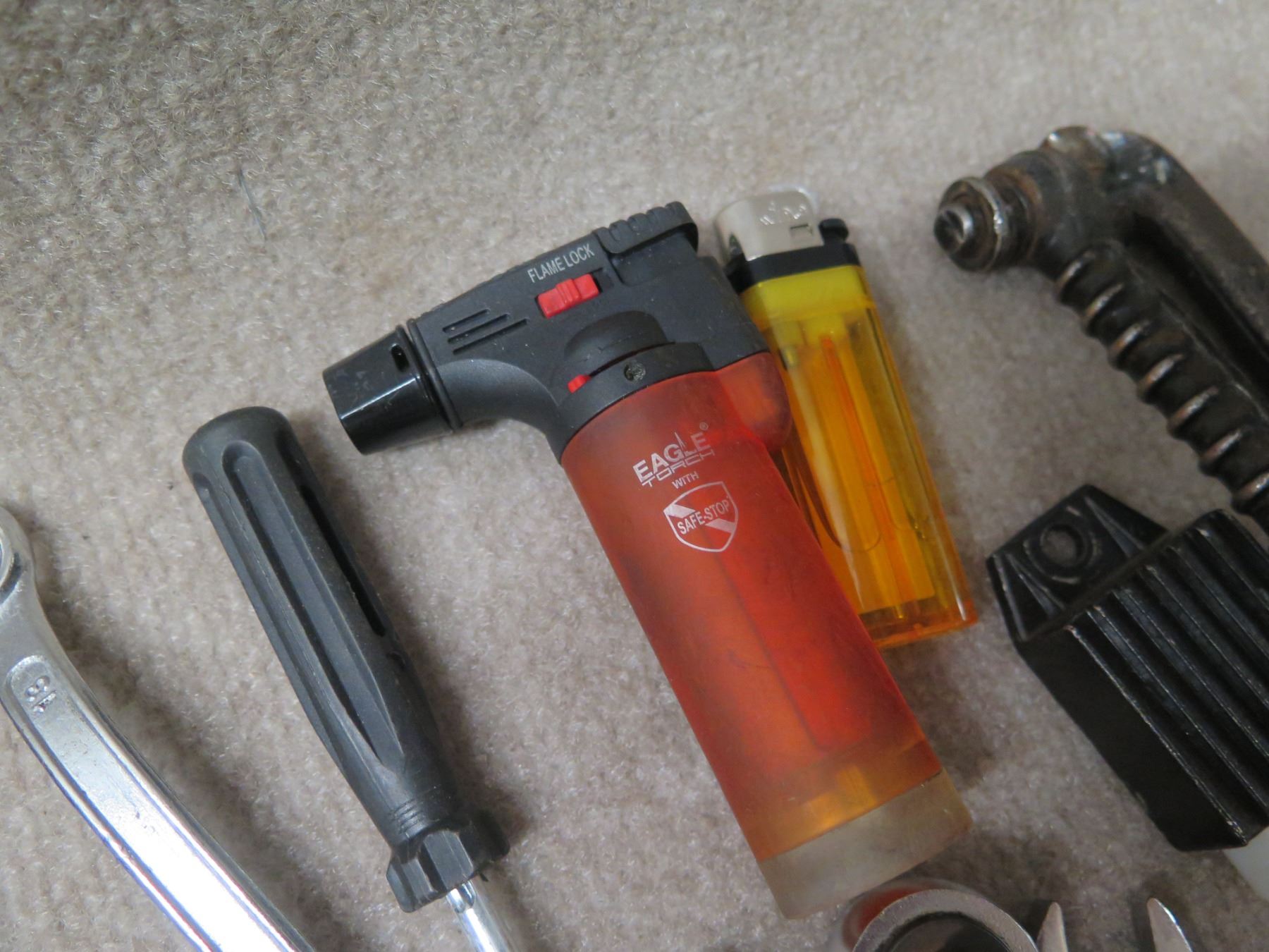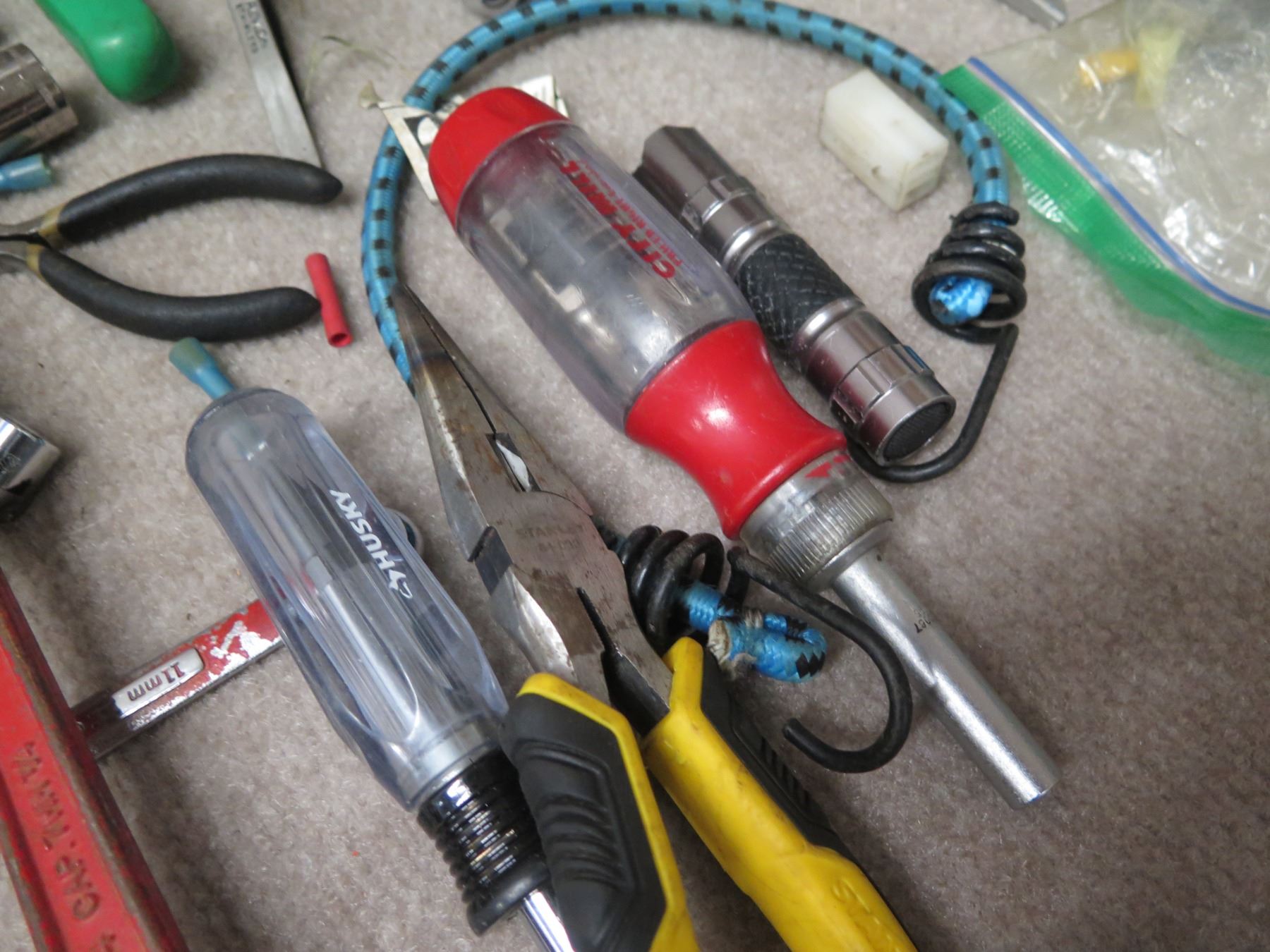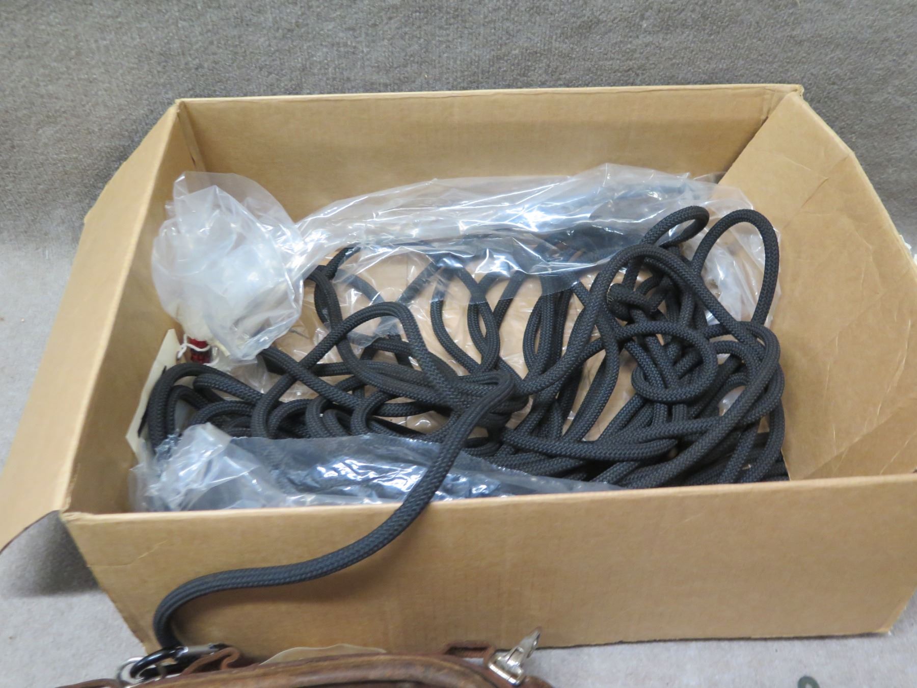 Multiple Hand Tools: Wrenches, Screwdrivers, Bolt Cutters, etc & Box Black Rope