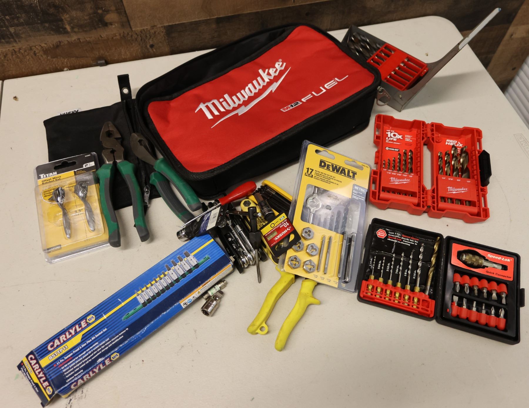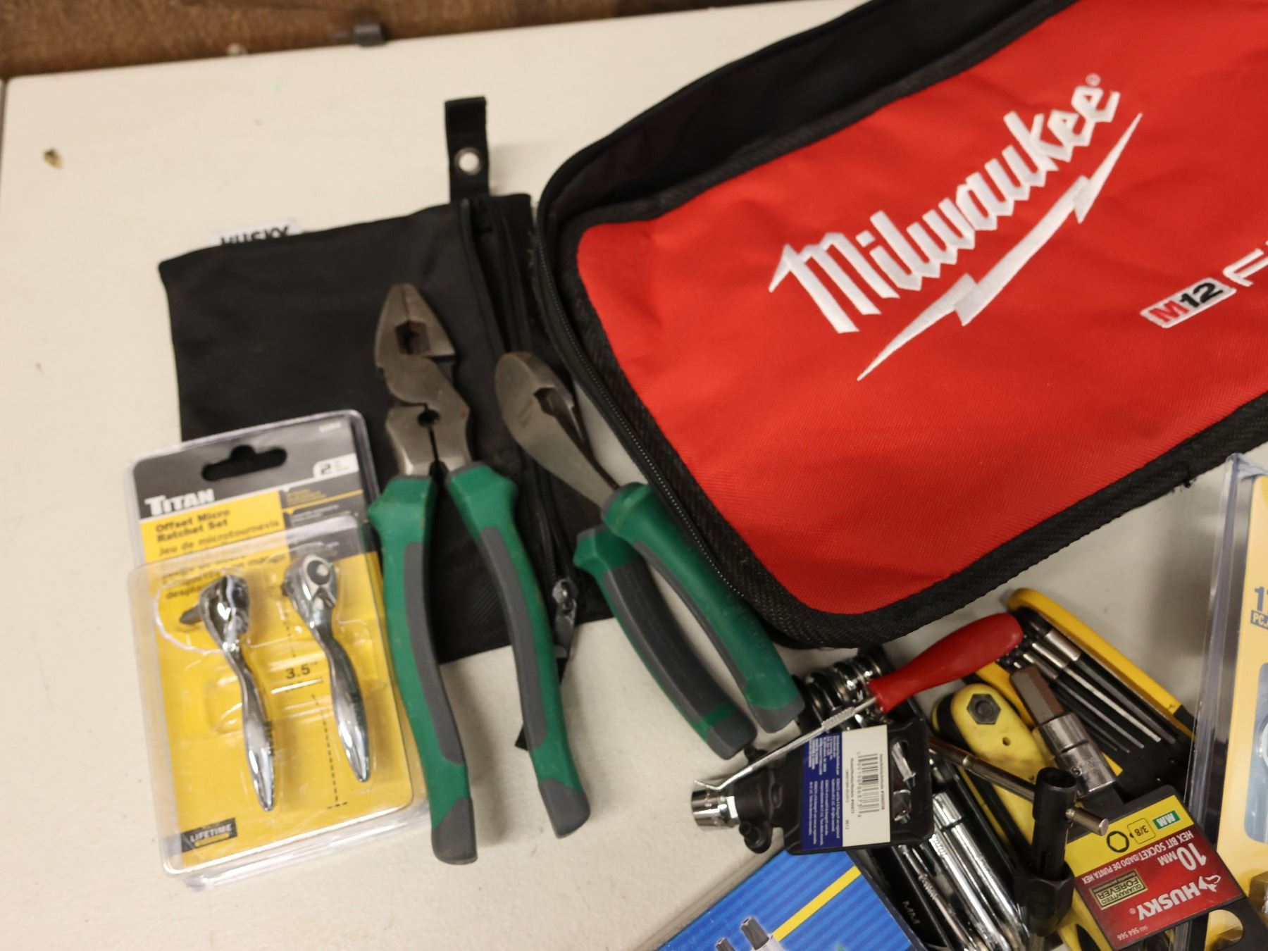 Multiple Hand Tools in Milwaukee Bag: Socket Set, Ratchets, Bits, etc
