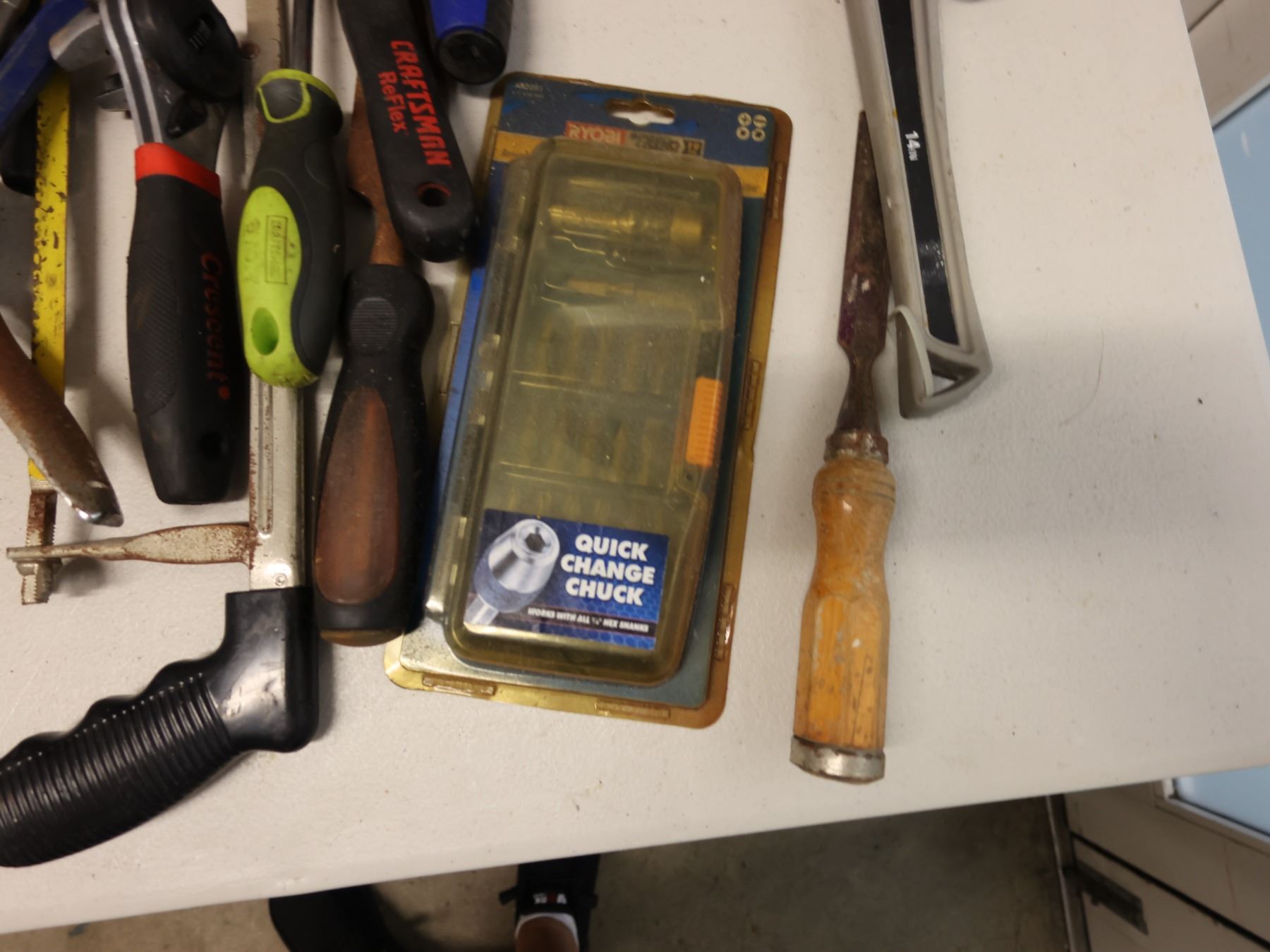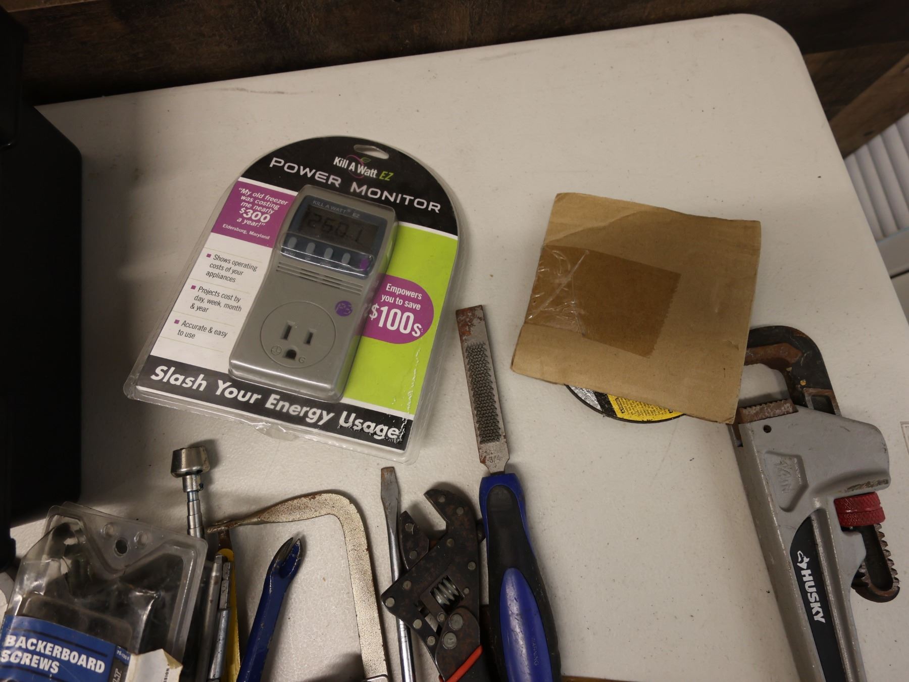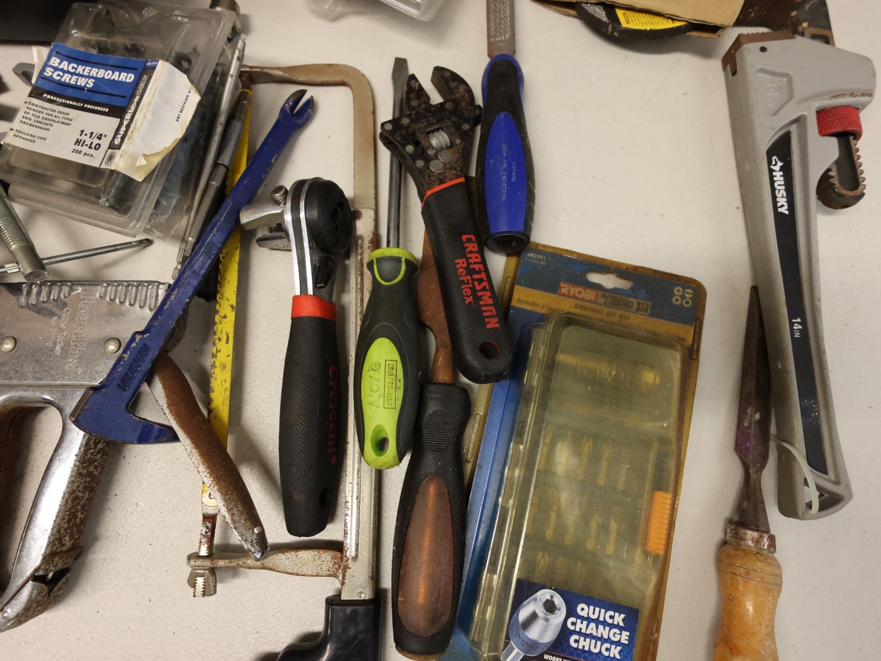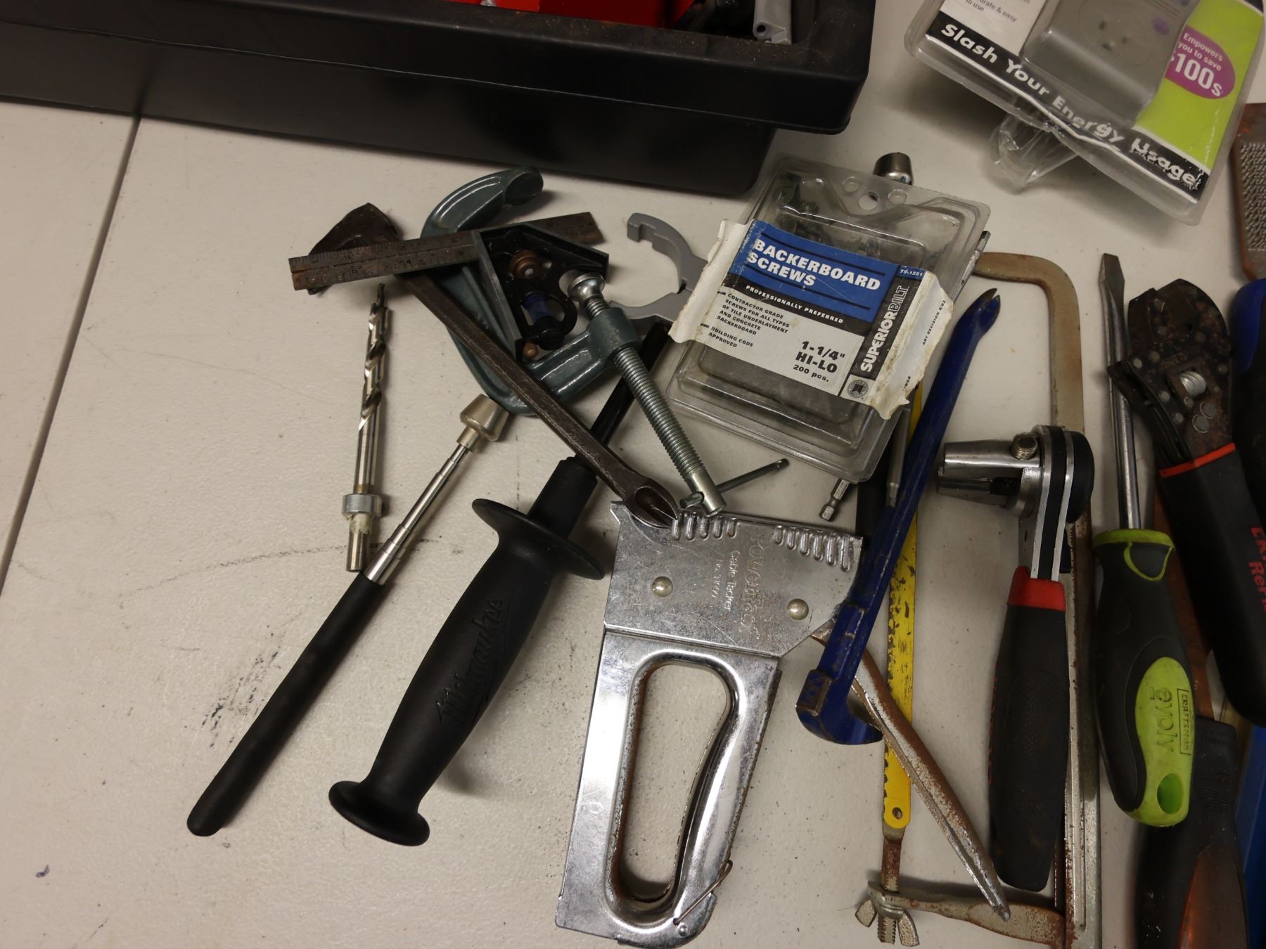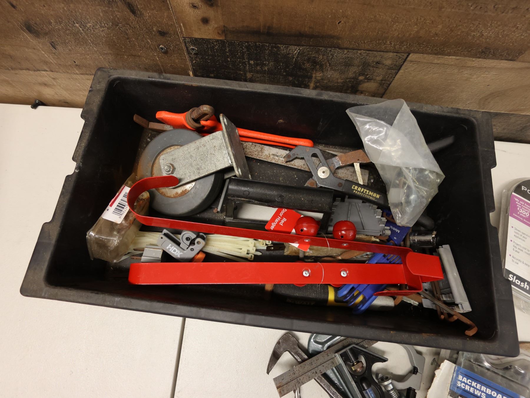 Multiple Hand Tools in Tray: Stapler, Quick Change Chuck, Wrenches, Power Monitor, etc
