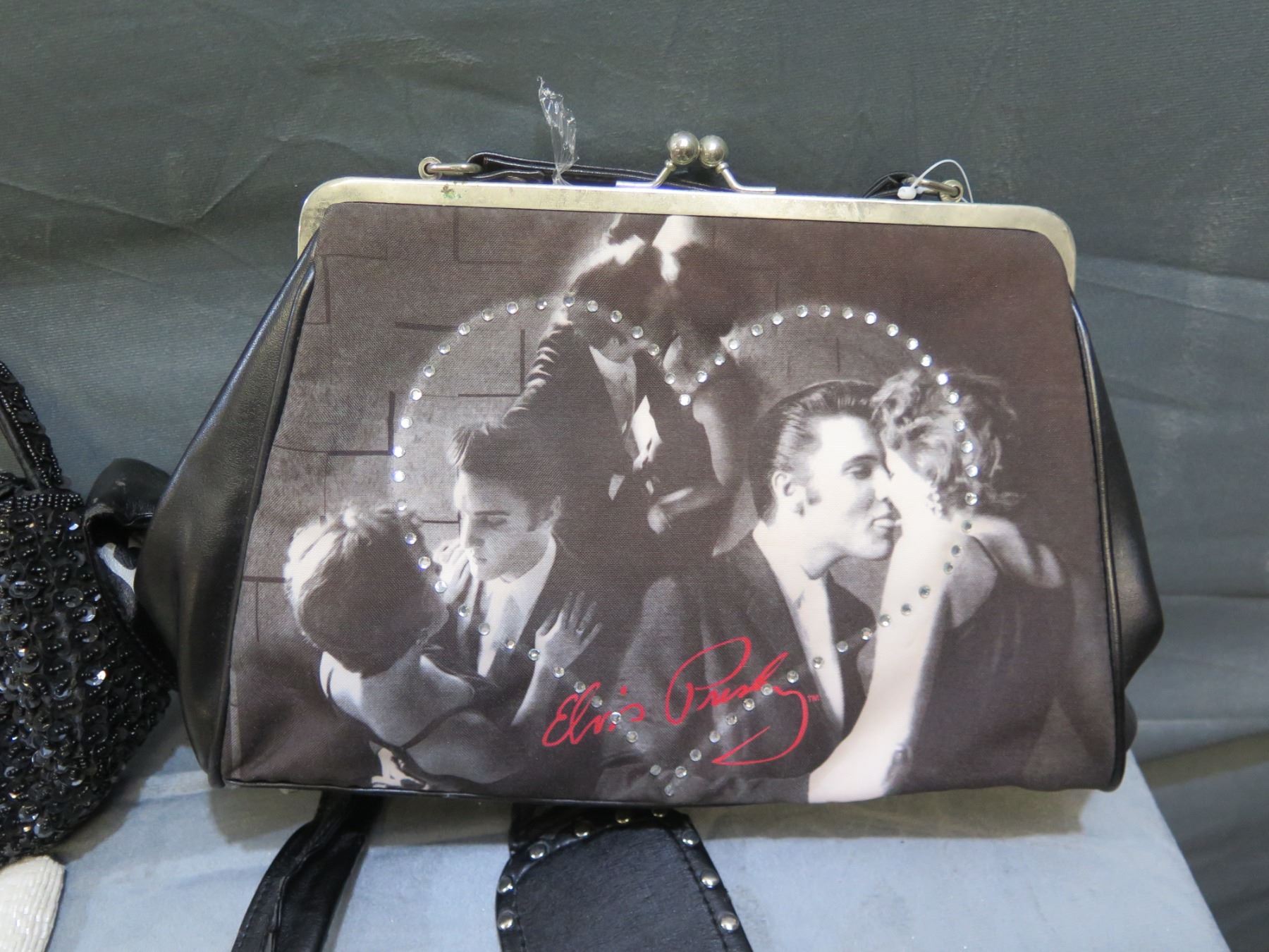 Multiple Handbags, Elvis Tote, Mother of Pearl Clutch Bags, Beaded Pouches, etc (unused)