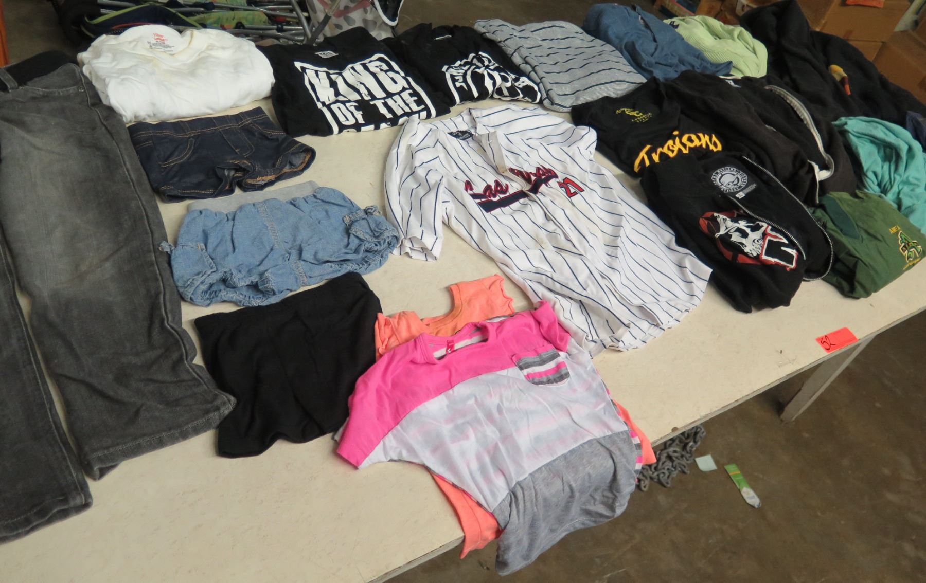 Multiple Jackets, Shirts, Jeans & Shorts: Las Vegas, Trojans, Hurley, Metal Mulisha, etc. Note: Items in this lot are from the Stadium's Lost & Found