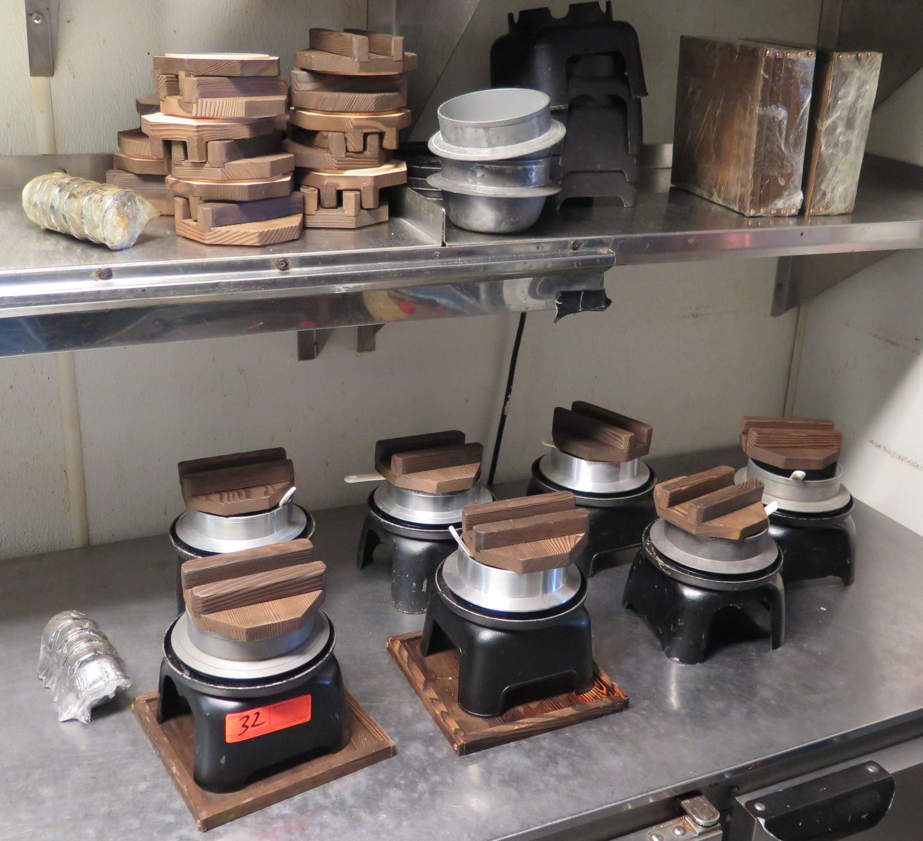 Multiple Japanese Shoten Rice Pots w/ Wooden Lids (shelves not included).