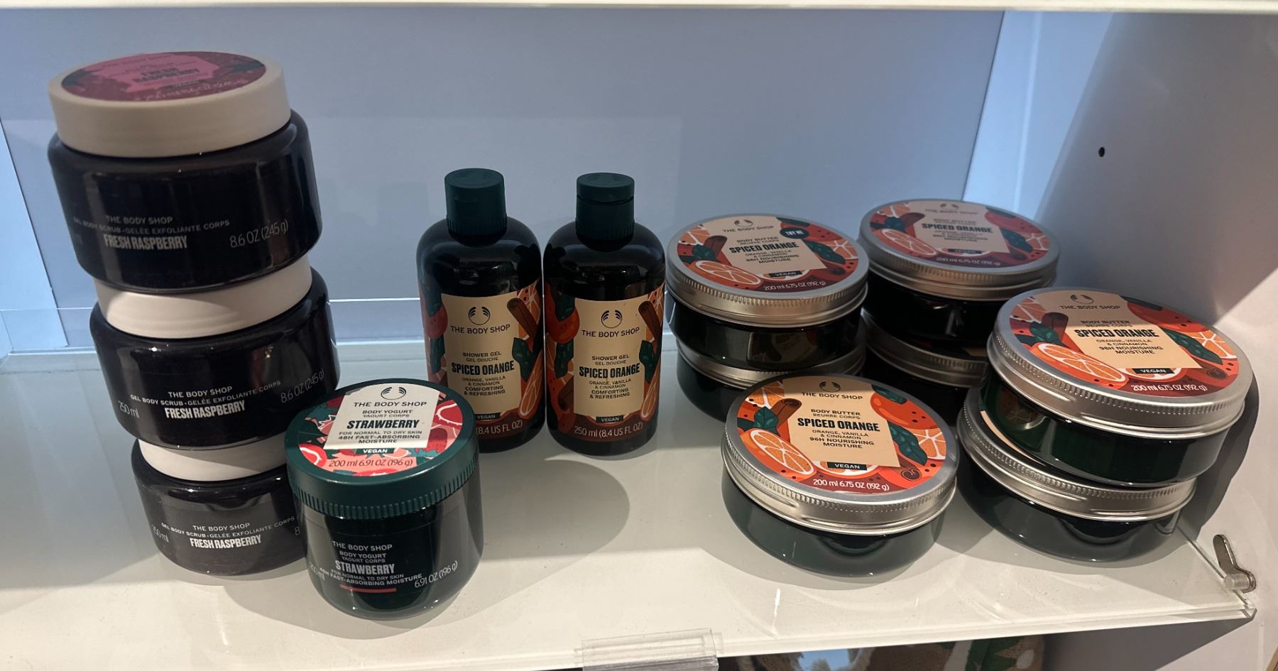 Multiple Jars Spiced Orange Body Butter, Shower Gel, Raspberry Body Scrub, Strawberry Body Yogurt