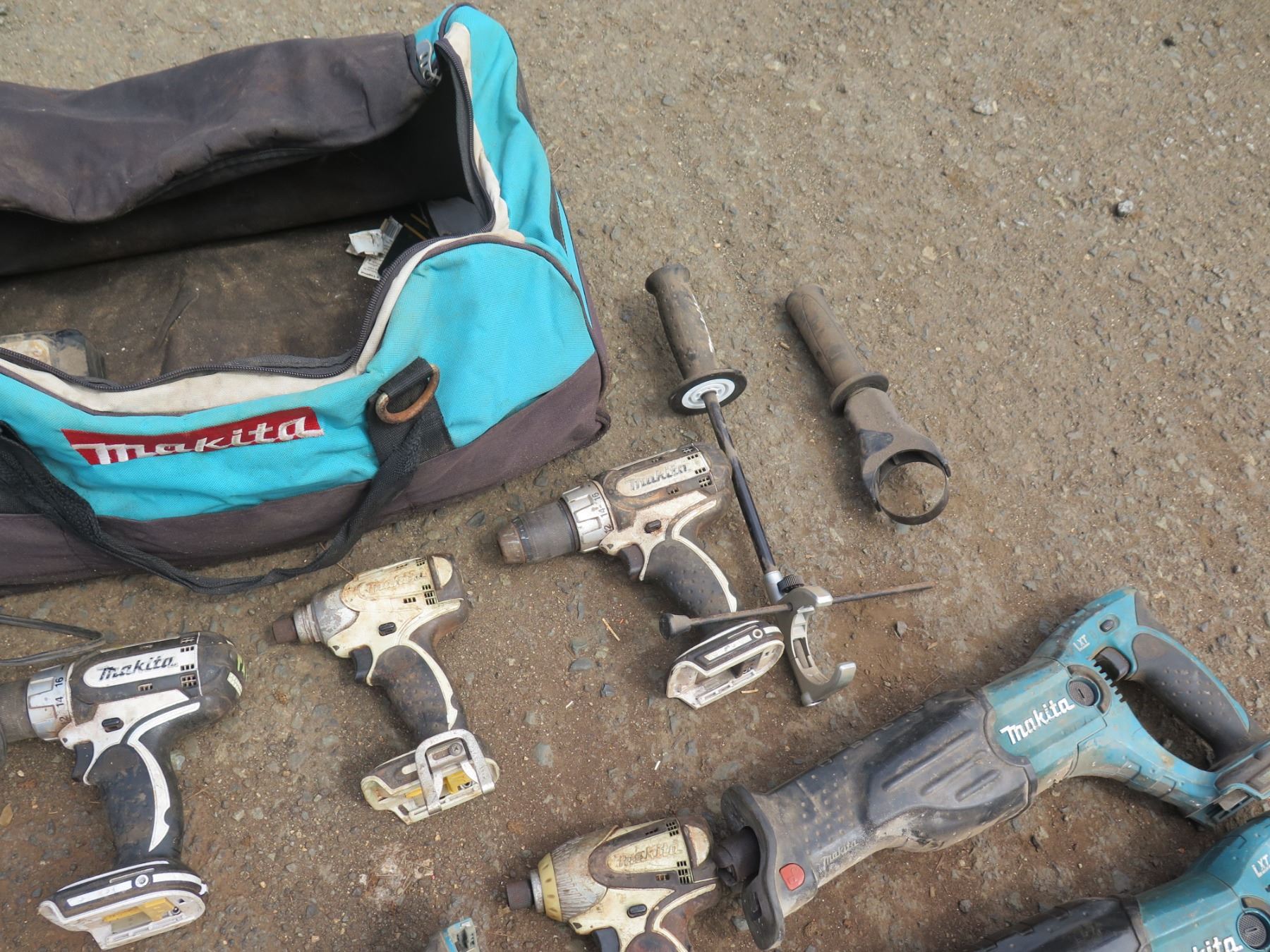 Multiple Makita Tools in Bag: Reciprocating Saws, Circular Saws, Grinders, Drills, Etc
