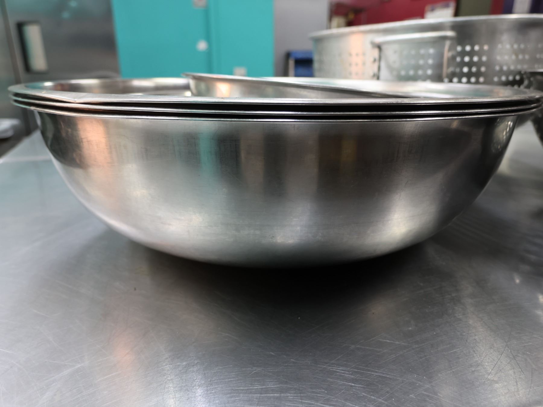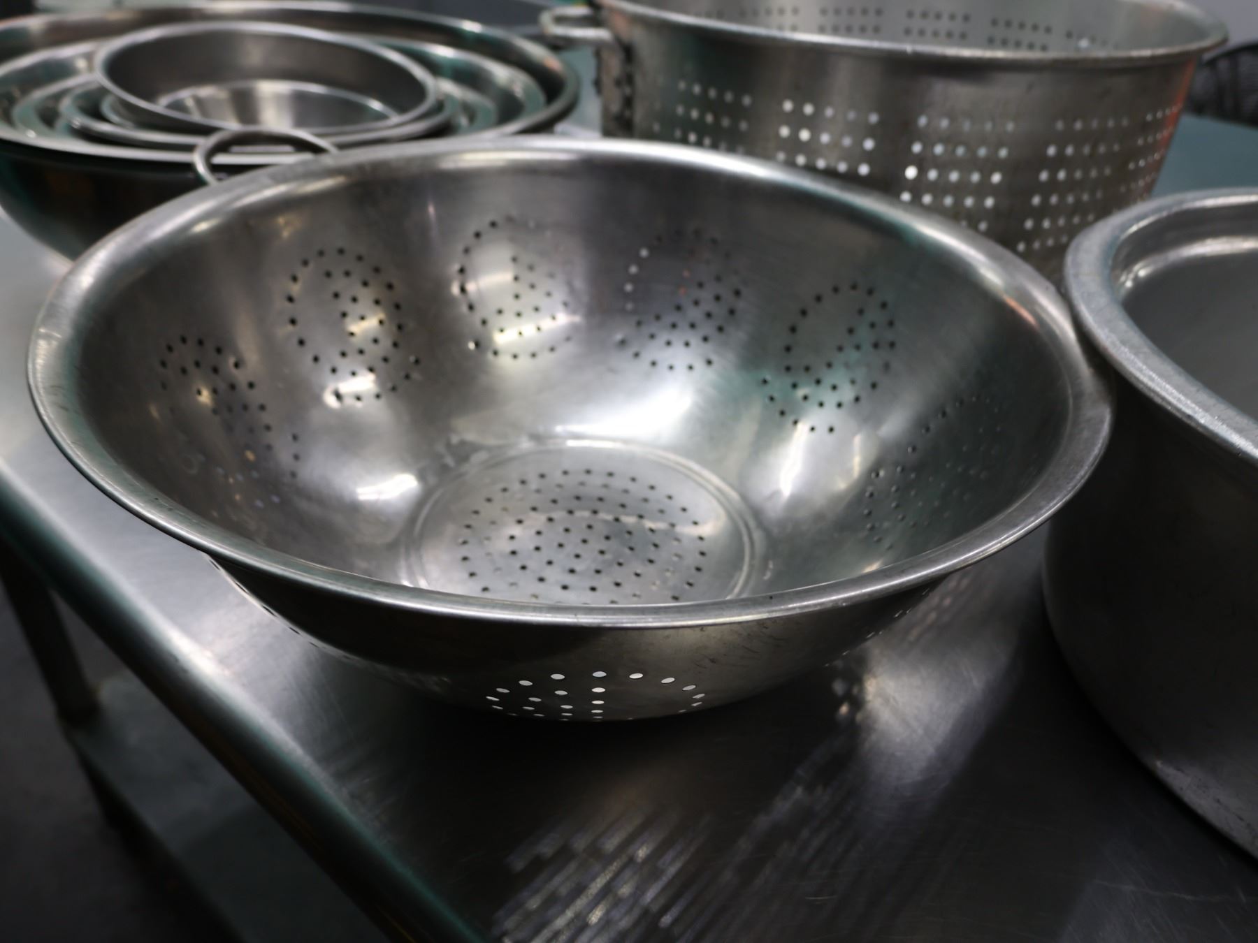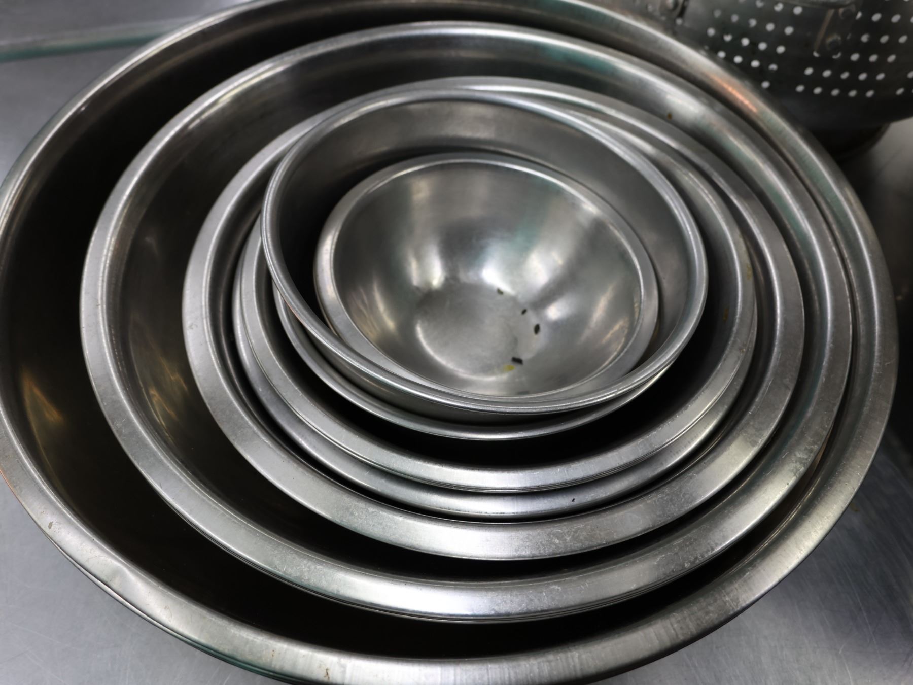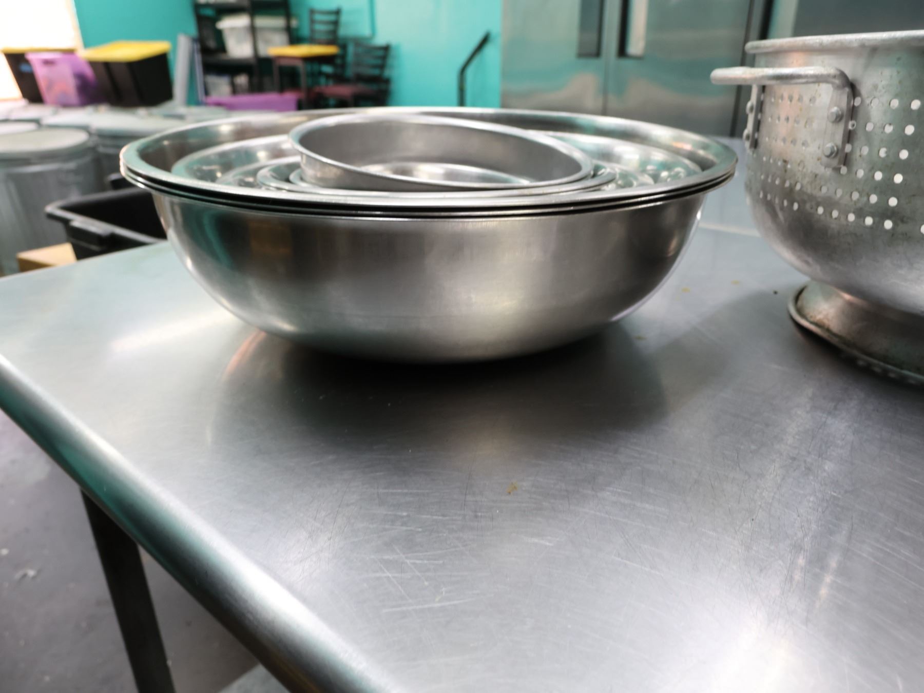 Multiple Metal Mixing Bowls & Strainers, Misc Sizes.