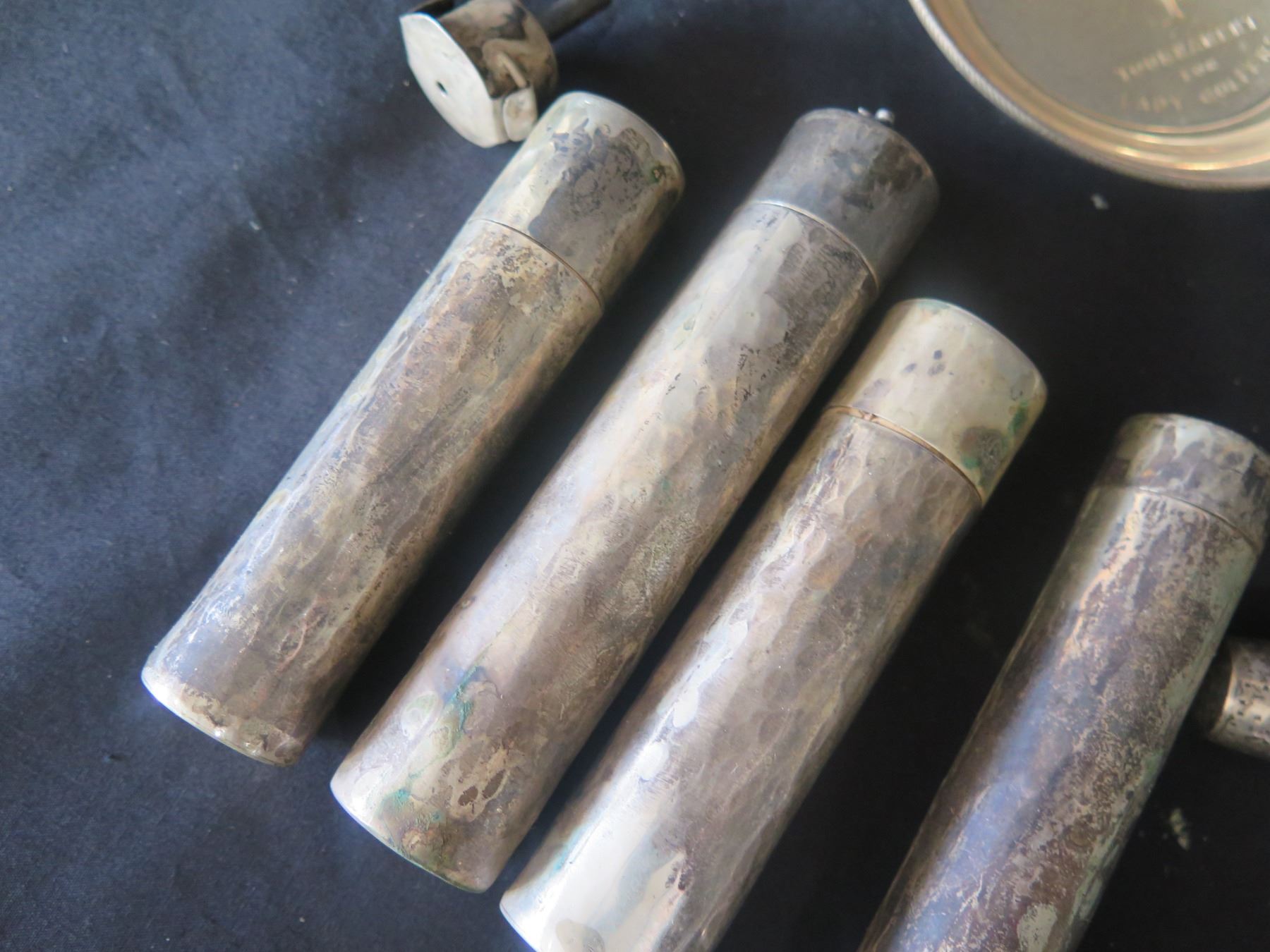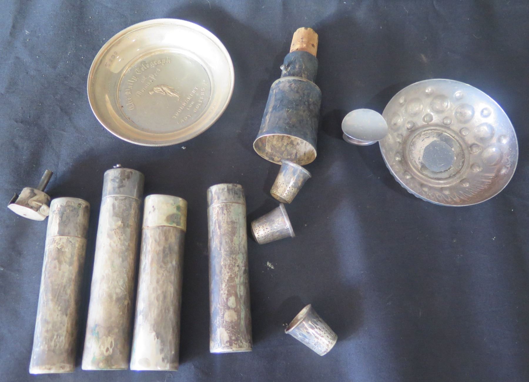 Multiple Metal Pieces: Cylinders, Thimbles, Ashtray, etc, Some Marked