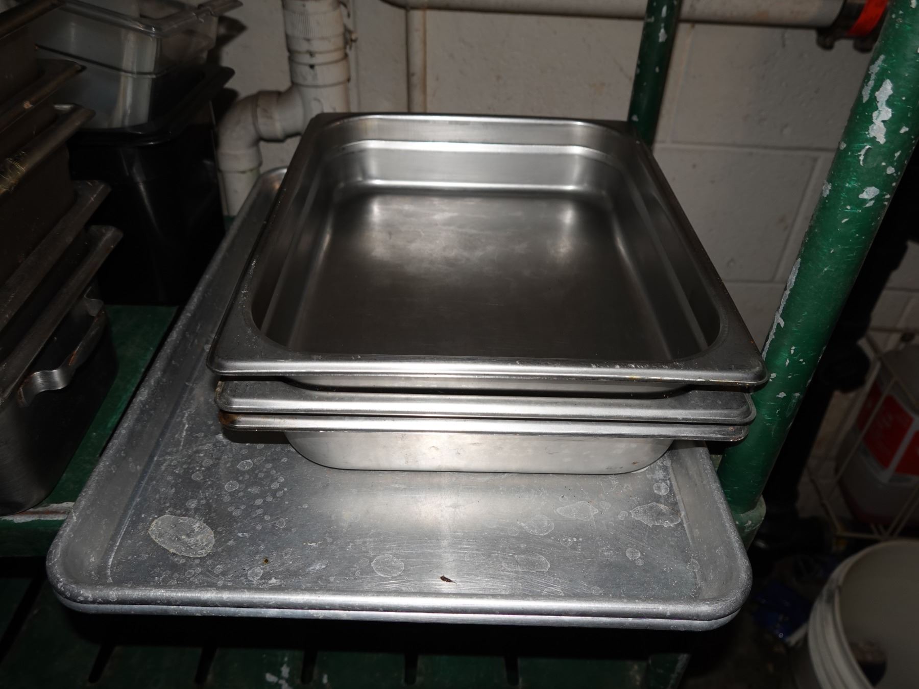 Multiple Metal & Plastic Food Containers w/ Some Lids, Baking Sheets, etc Misc Sizes.