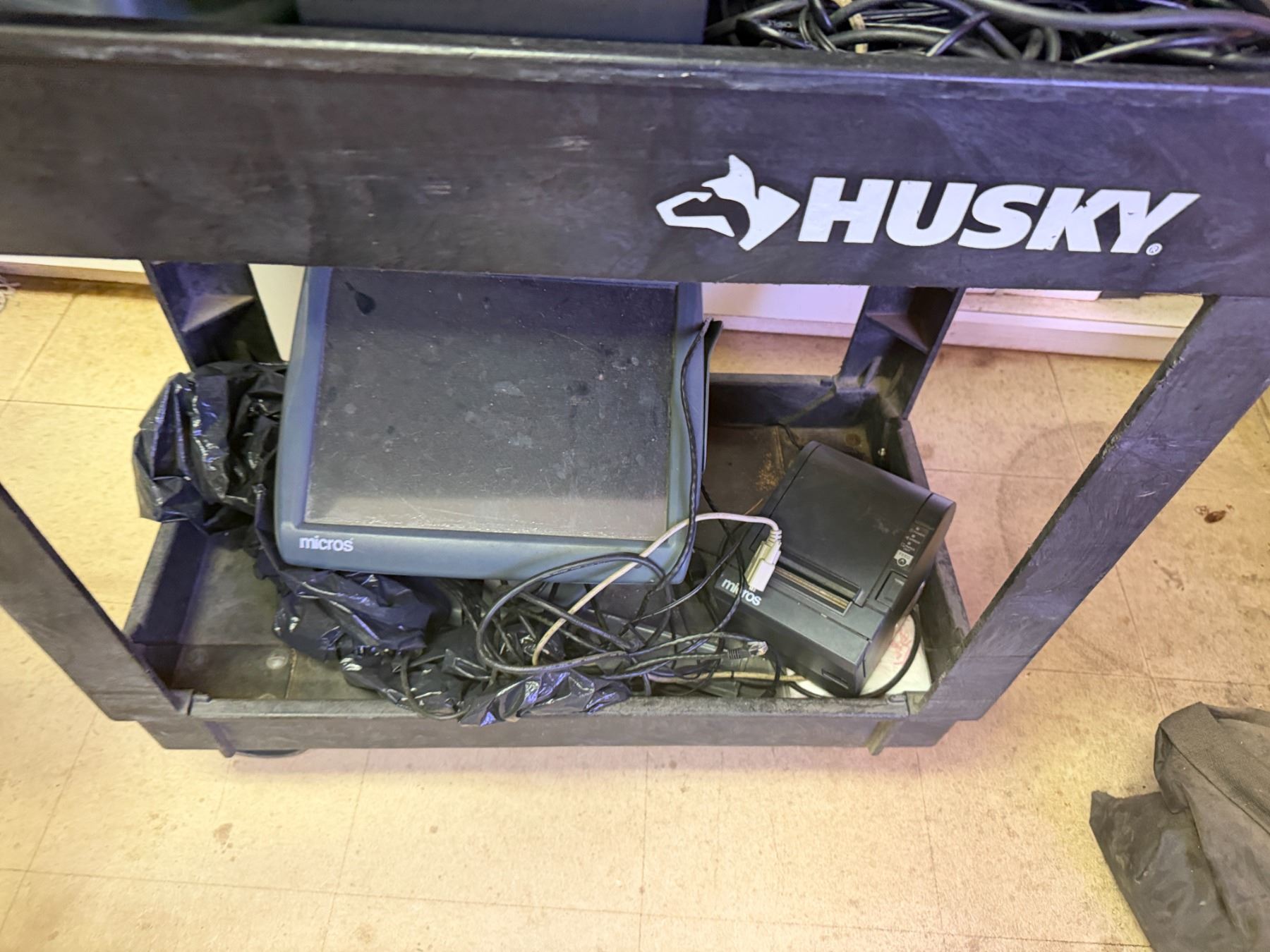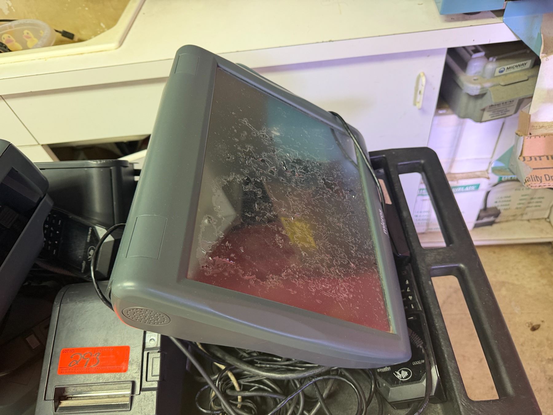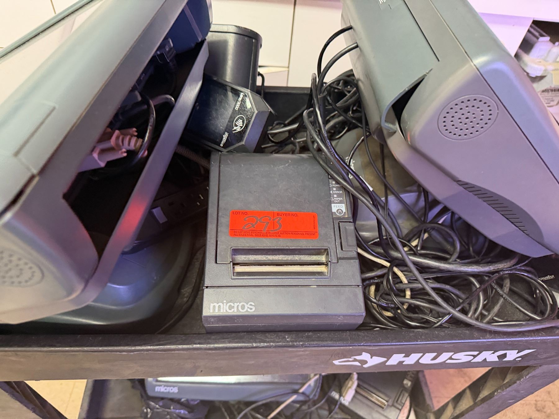 Multiple Micros POS System Parts, 2 Tower Computers, NEC MultiSync Monitor, etc (cart not included). Untested - As Is.