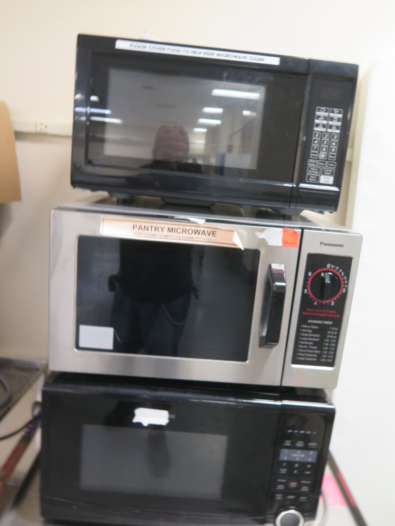 Multiple Microwave & Toaster Ovens: Panasonic, Black & Decker, GE, etc (carts not included)