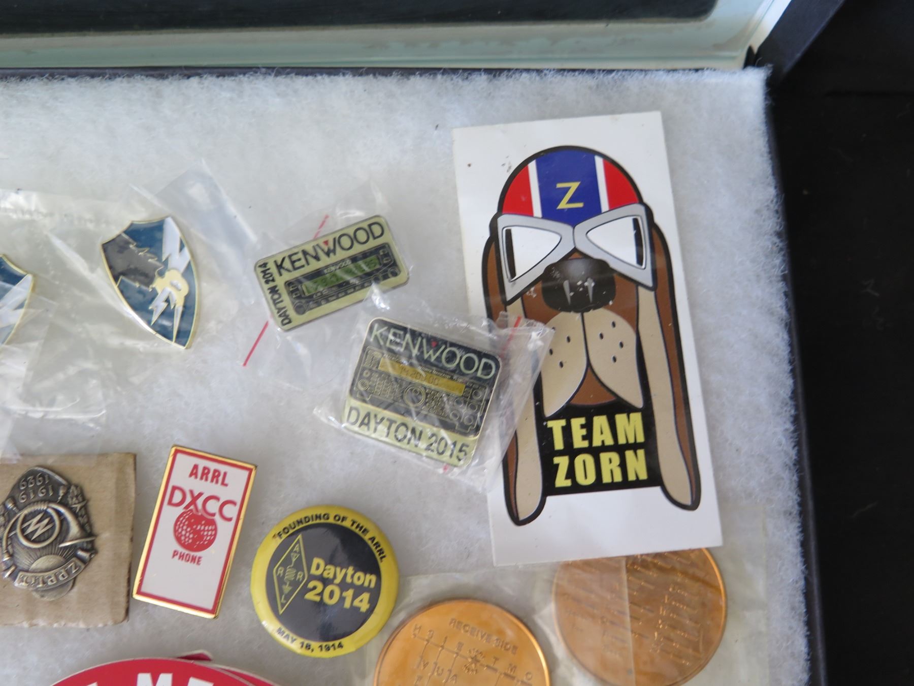 Multiple Military Pins & Medals ARRL AOC TELLG. Milit in Display Case 16"L