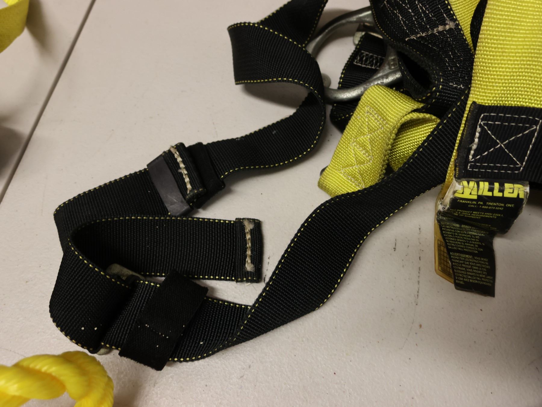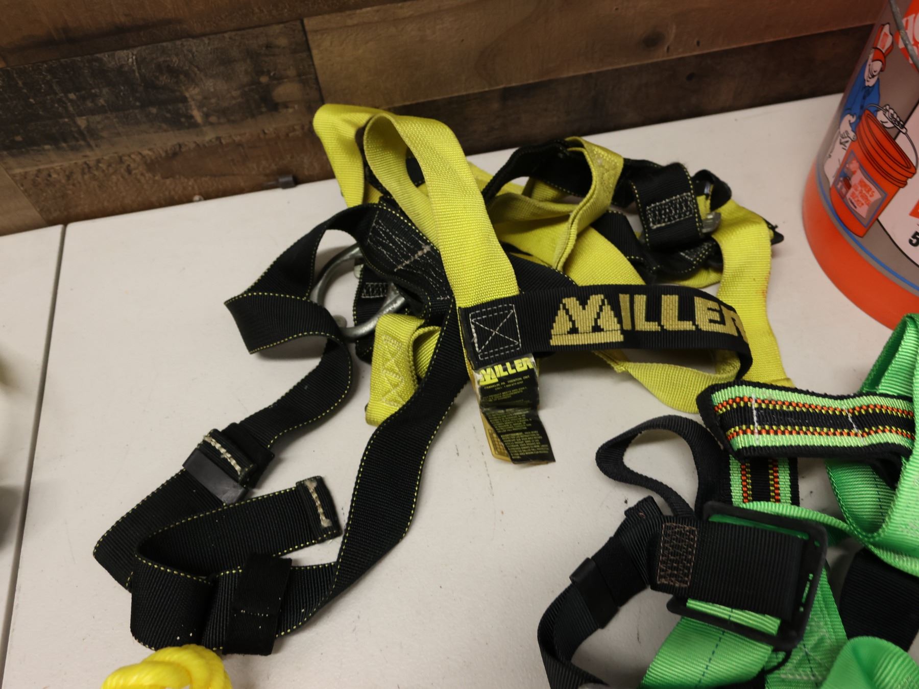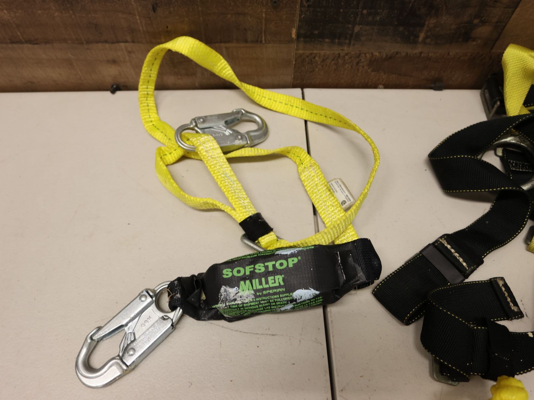 Multiple Miller Harnesses, Sofstop, Carabiners, Rope, etc