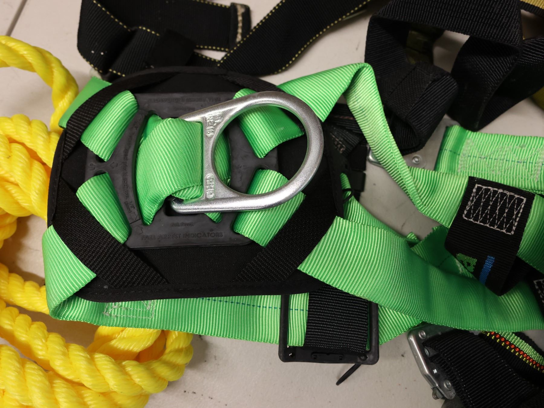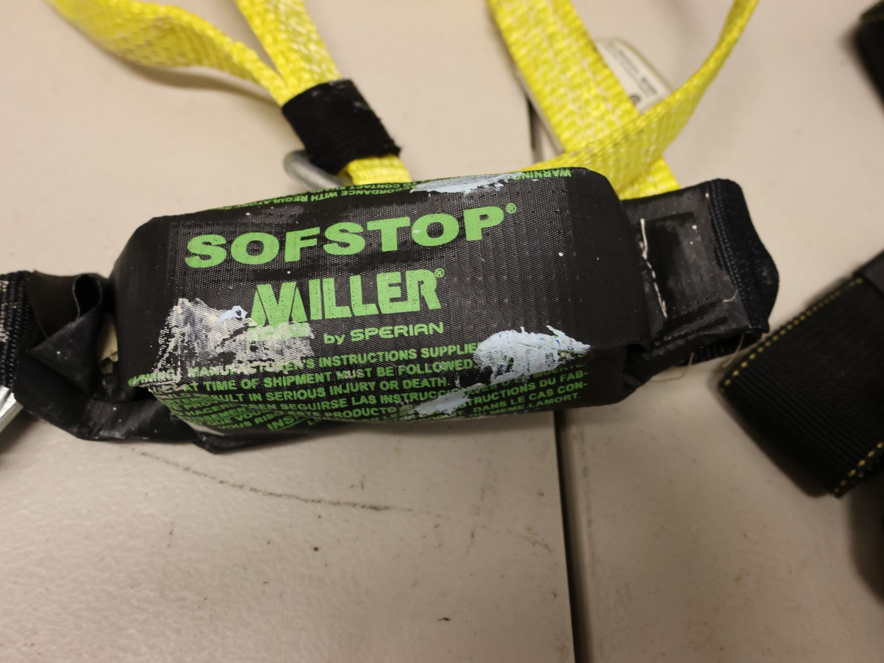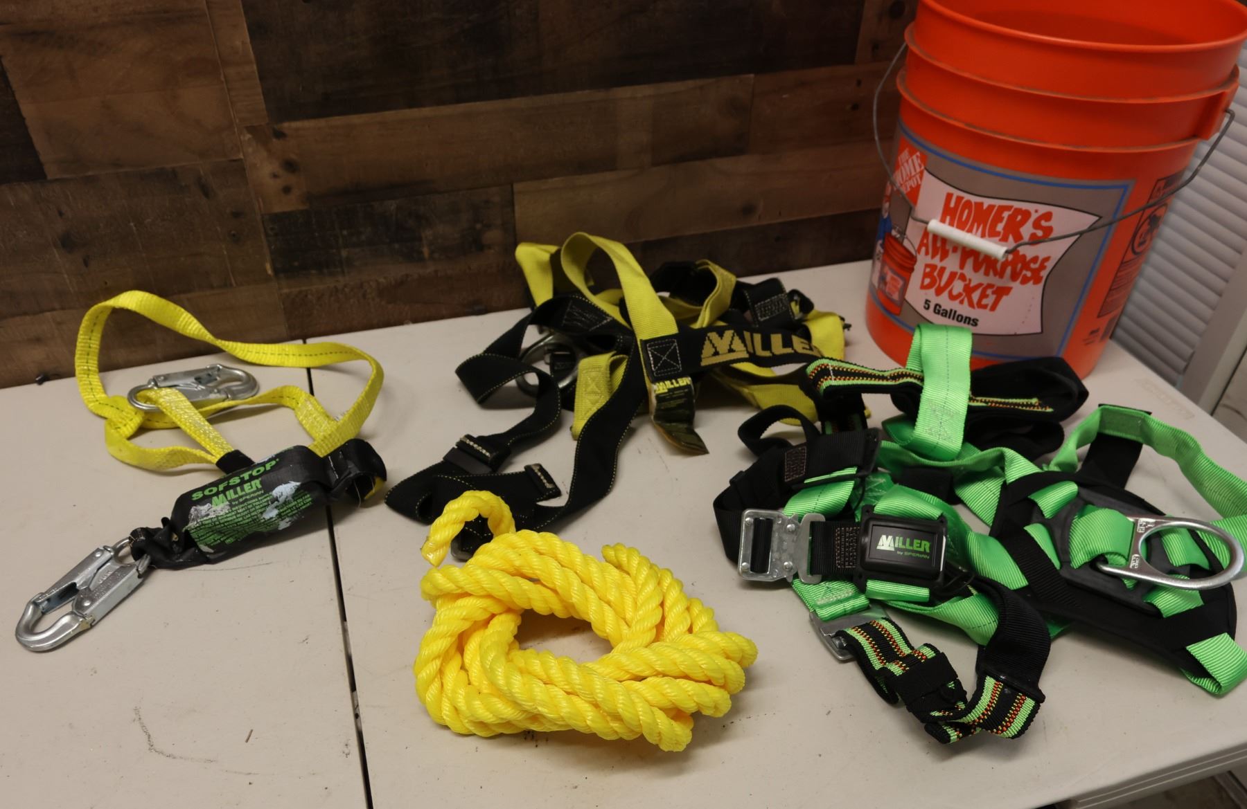 Multiple Miller Harnesses, Sofstop, Carabiners, Rope, etc