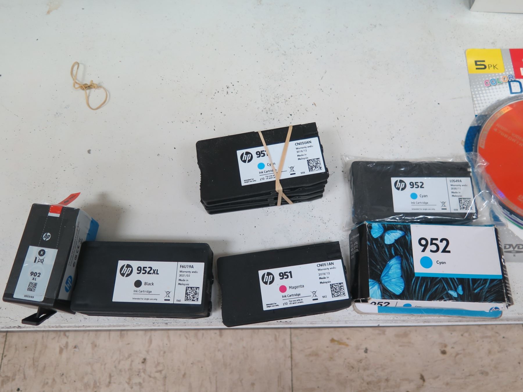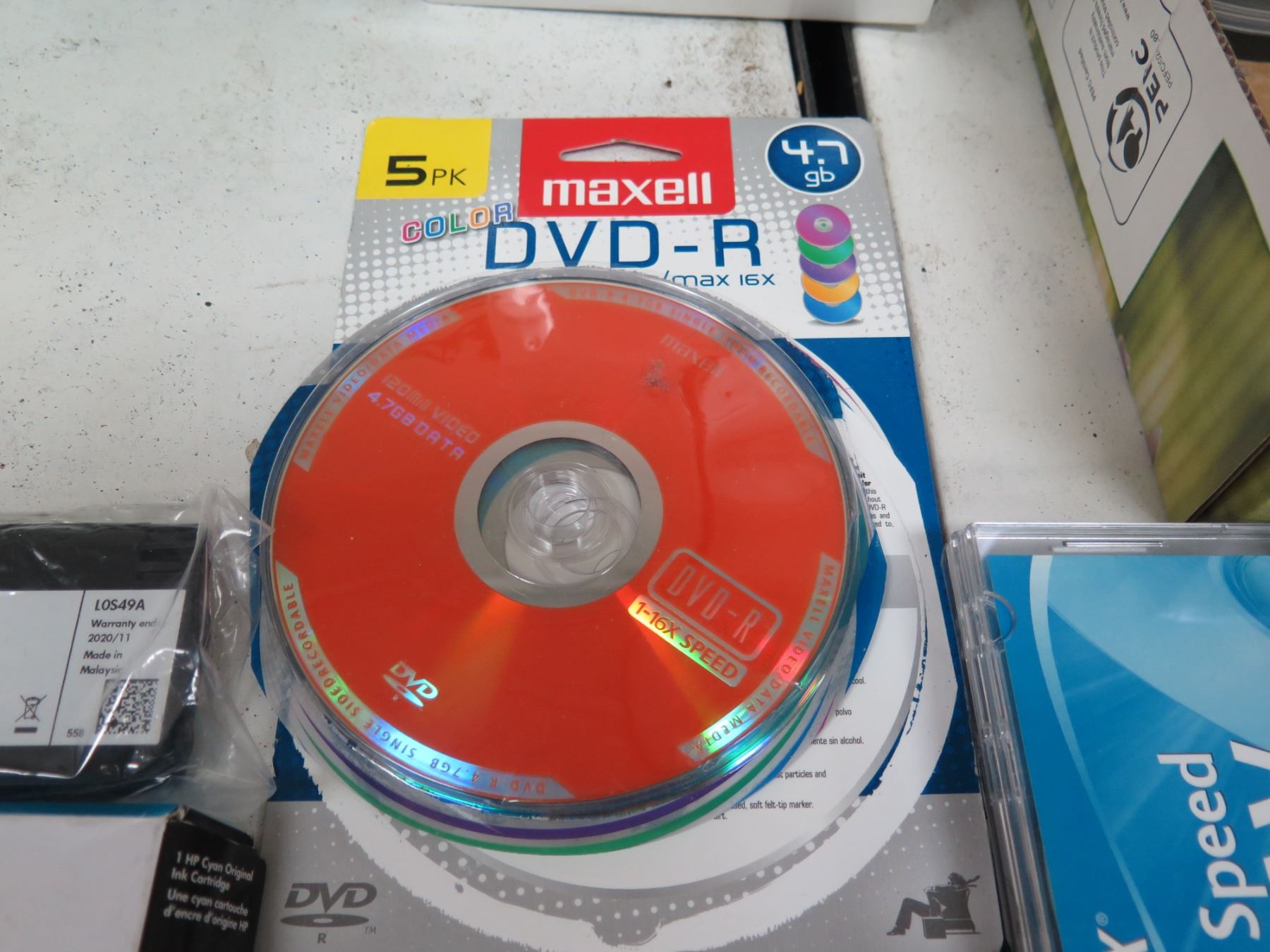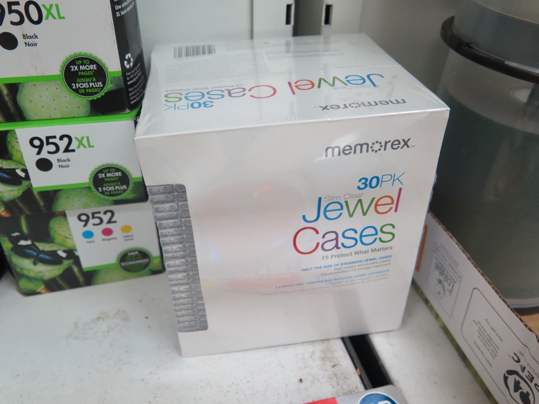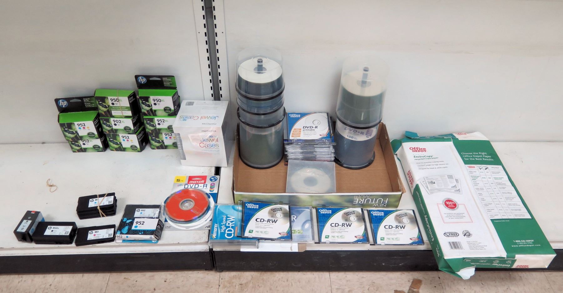 Multiple Misc HP Ink, Memorex Jewel Cases, DVR's & CD-RW Discs, Paper, etc