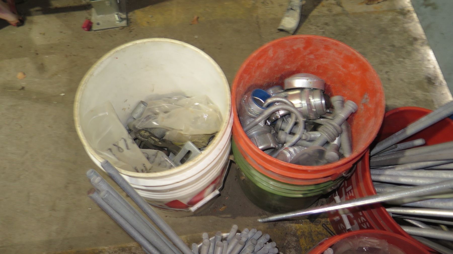 Multiple Misc Steel Pipe & Buckets of Short Pipe, Fittings & Misc
