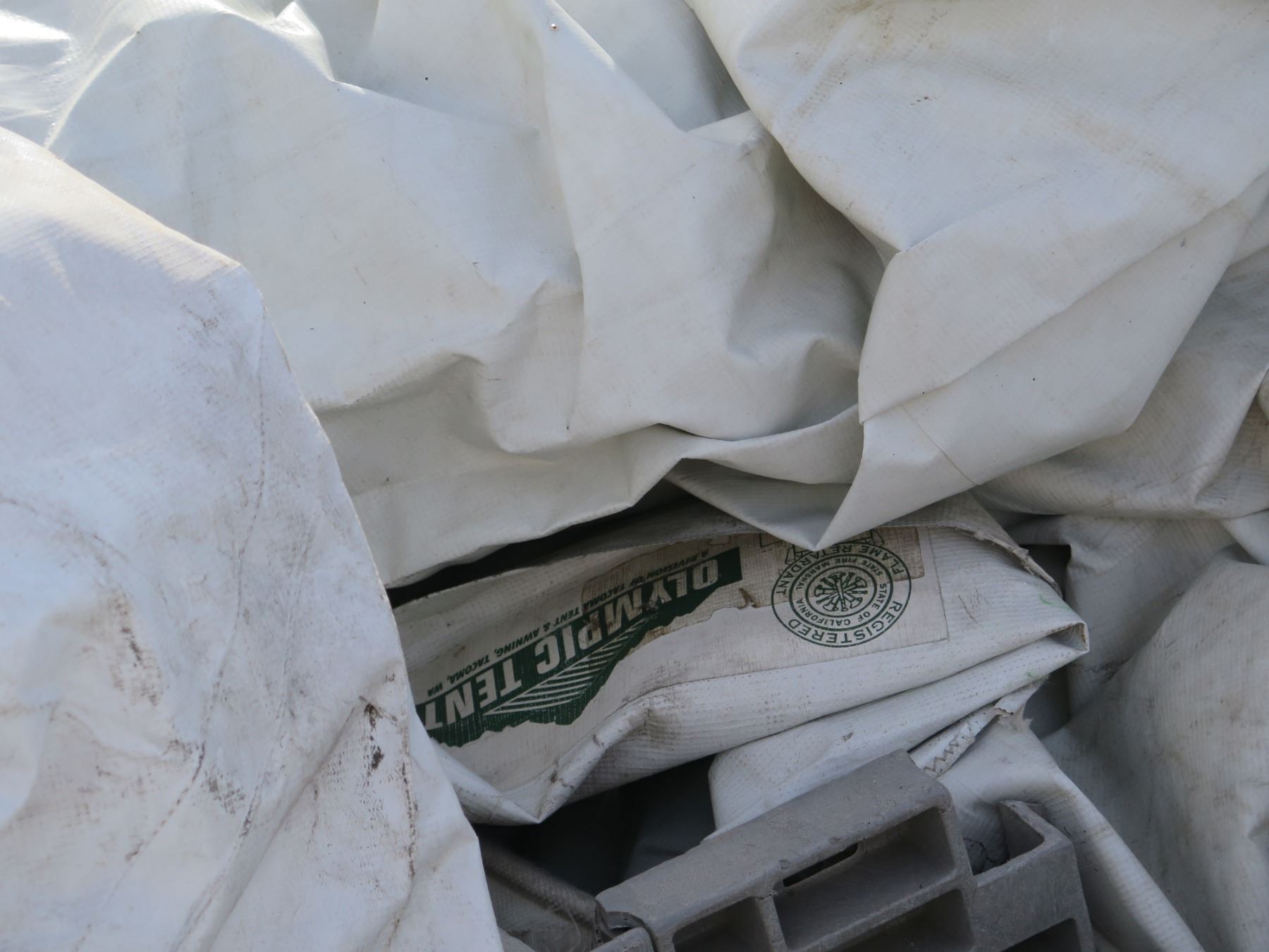 Multiple Olympic Tent Flame Retardant Tarps & Panels (some in bags)