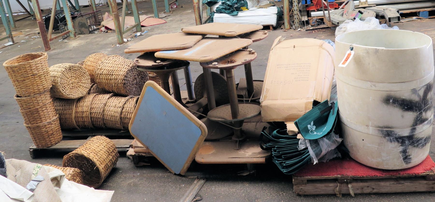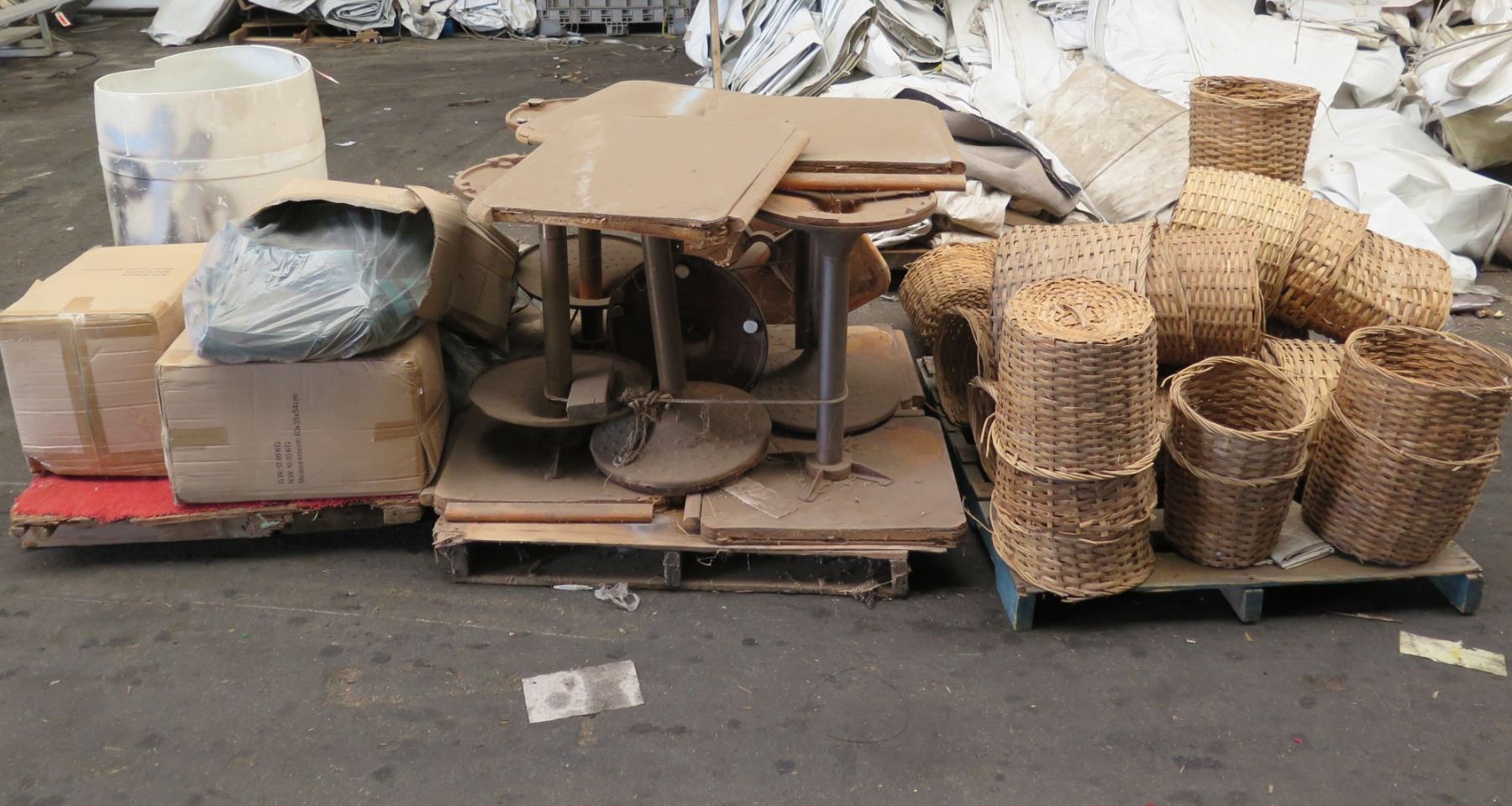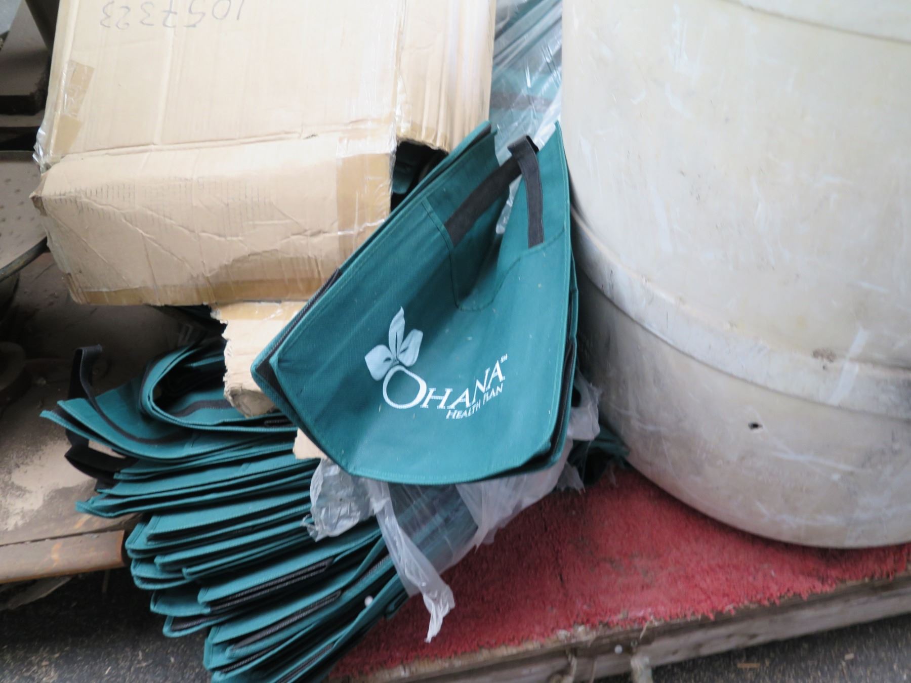 Multiple Pedestal Tables, Straw Baskets & Ohana Health Plan Bags 40x35x54cm