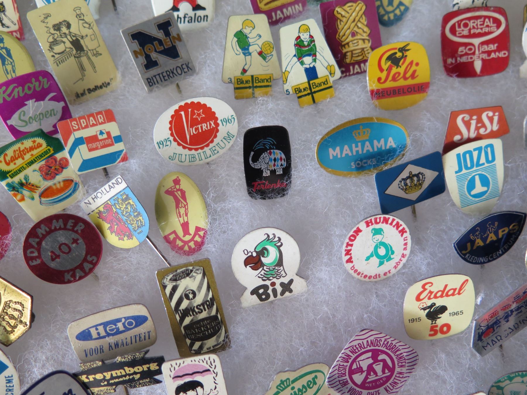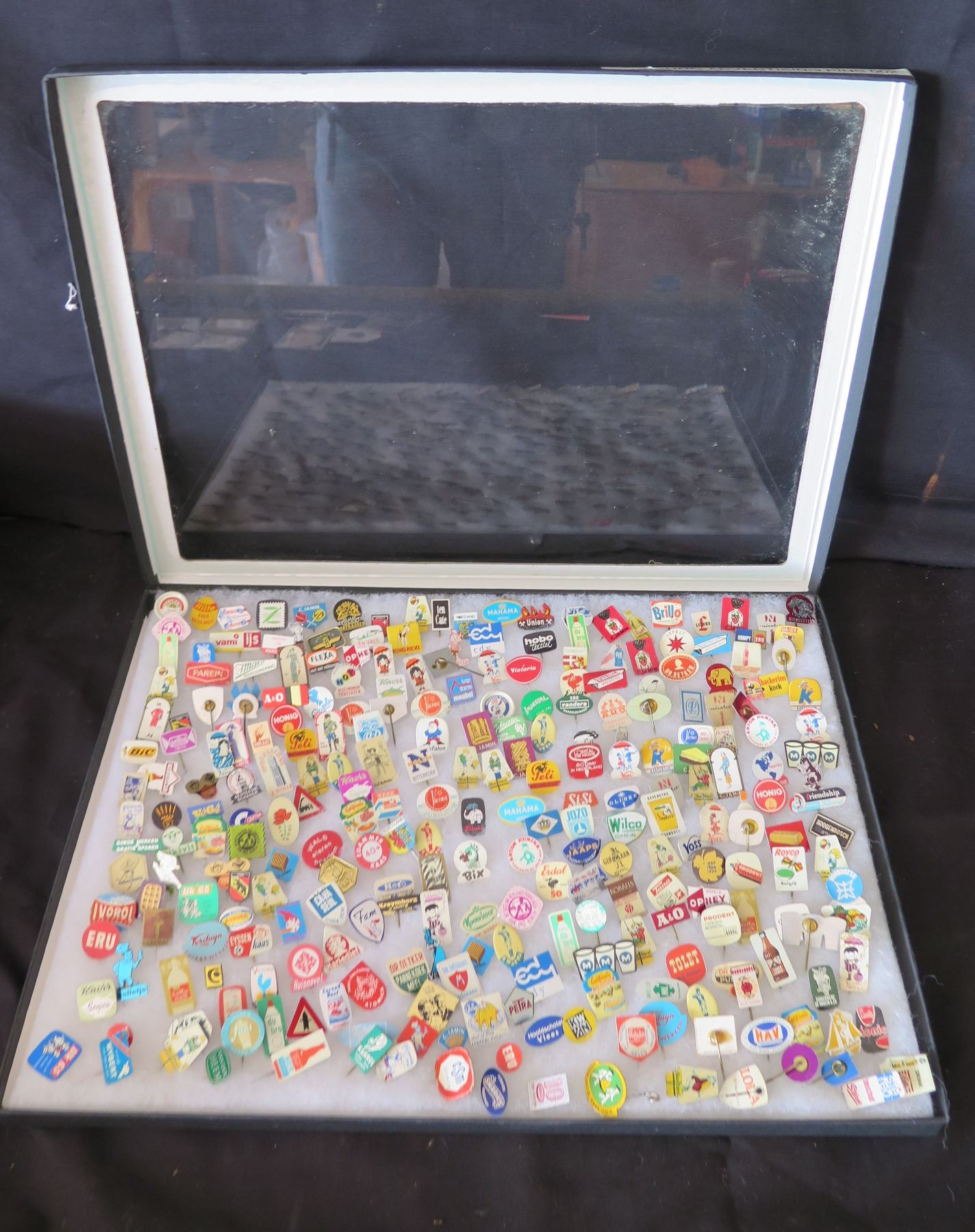 Multiple Pins: Food, Places, Balloons, Events, etc Euro Advertising Pins 002 in Display Case 16"L