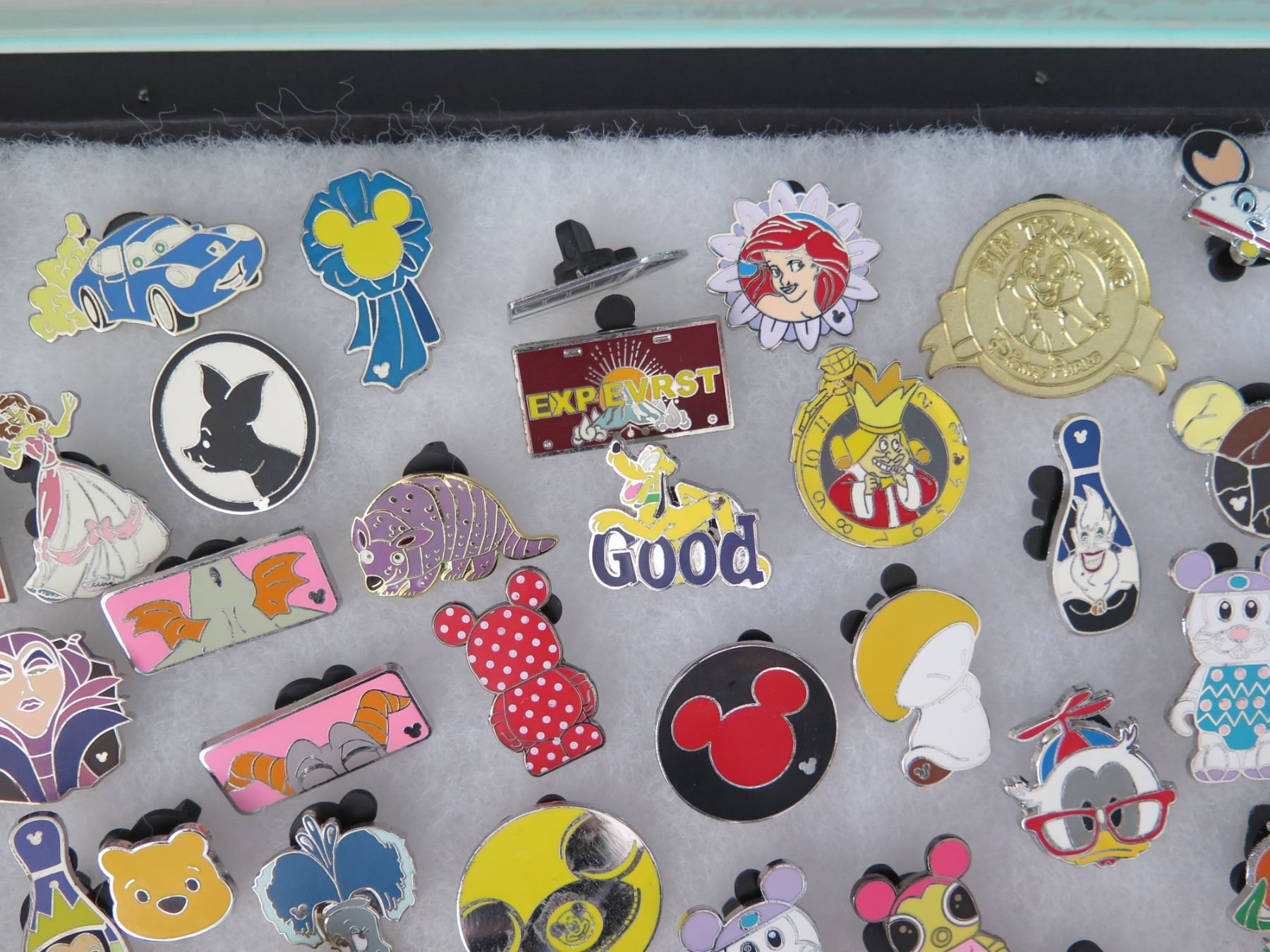 Multiple Pins & Medals: Characters, Animals, Alphabets, etc in Display Case 16"L
