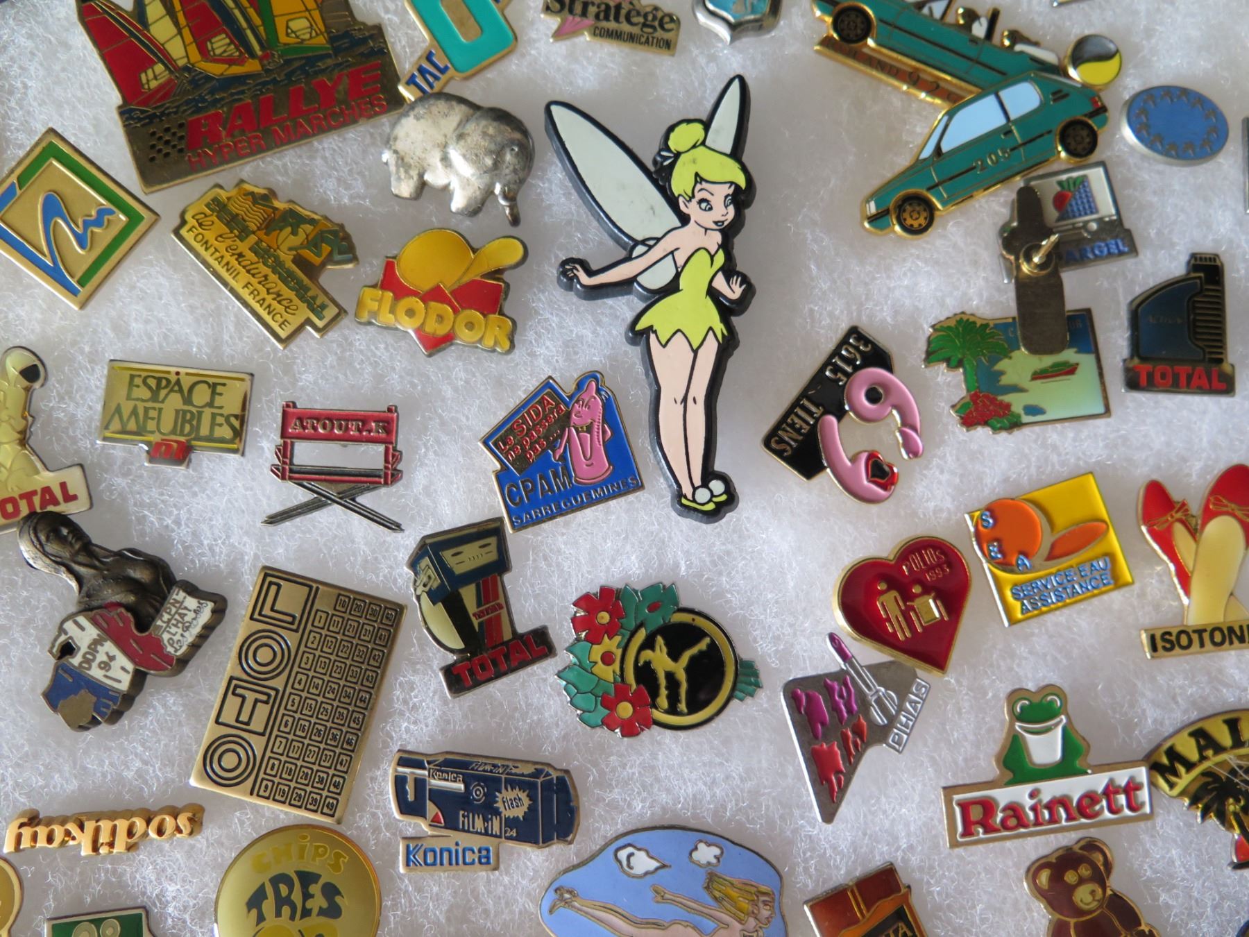 Multiple Pins & Medals: Characters, Animals, Sports, Food, etc in Display Case 16"L