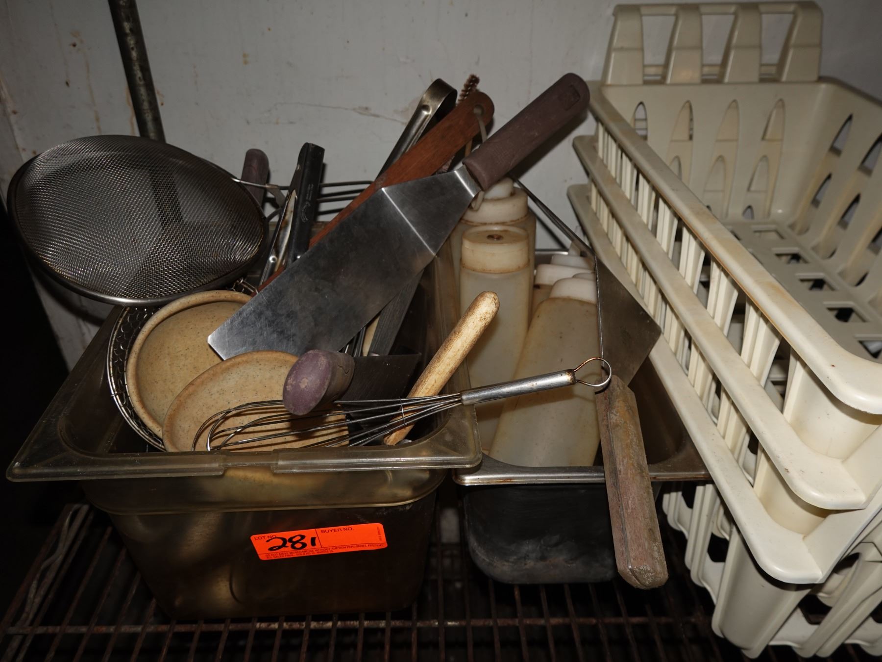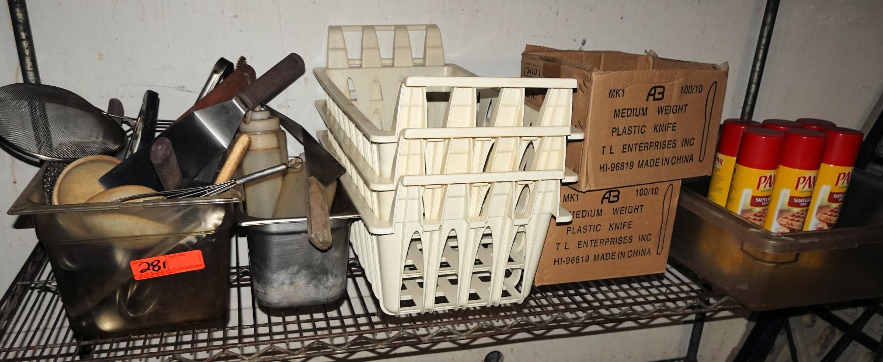 Multiple Plastic Baskets, Pam Spray, Utensils, Condiment Bottles, etc.