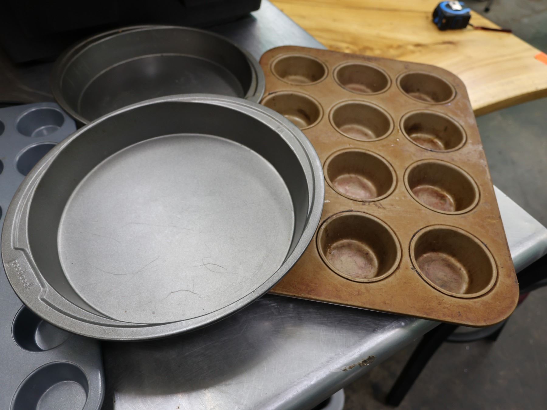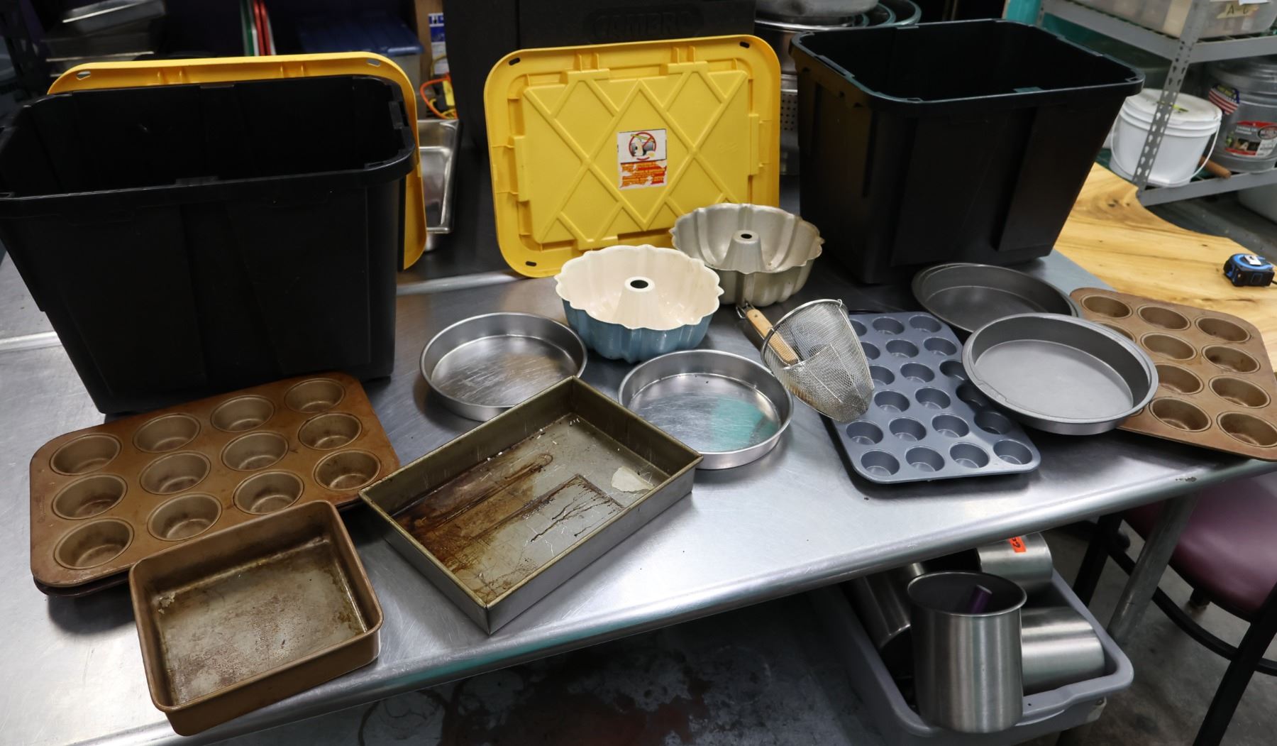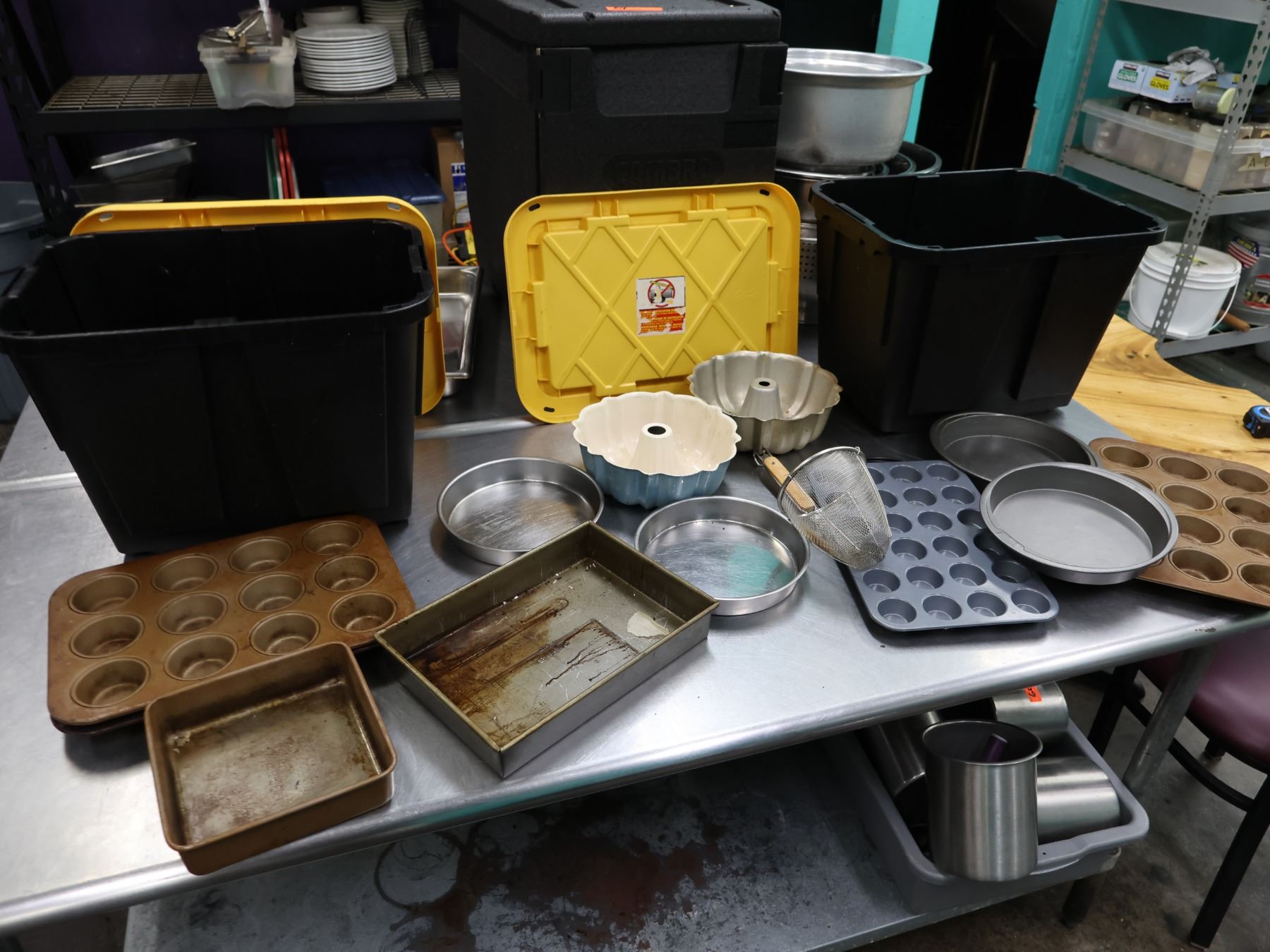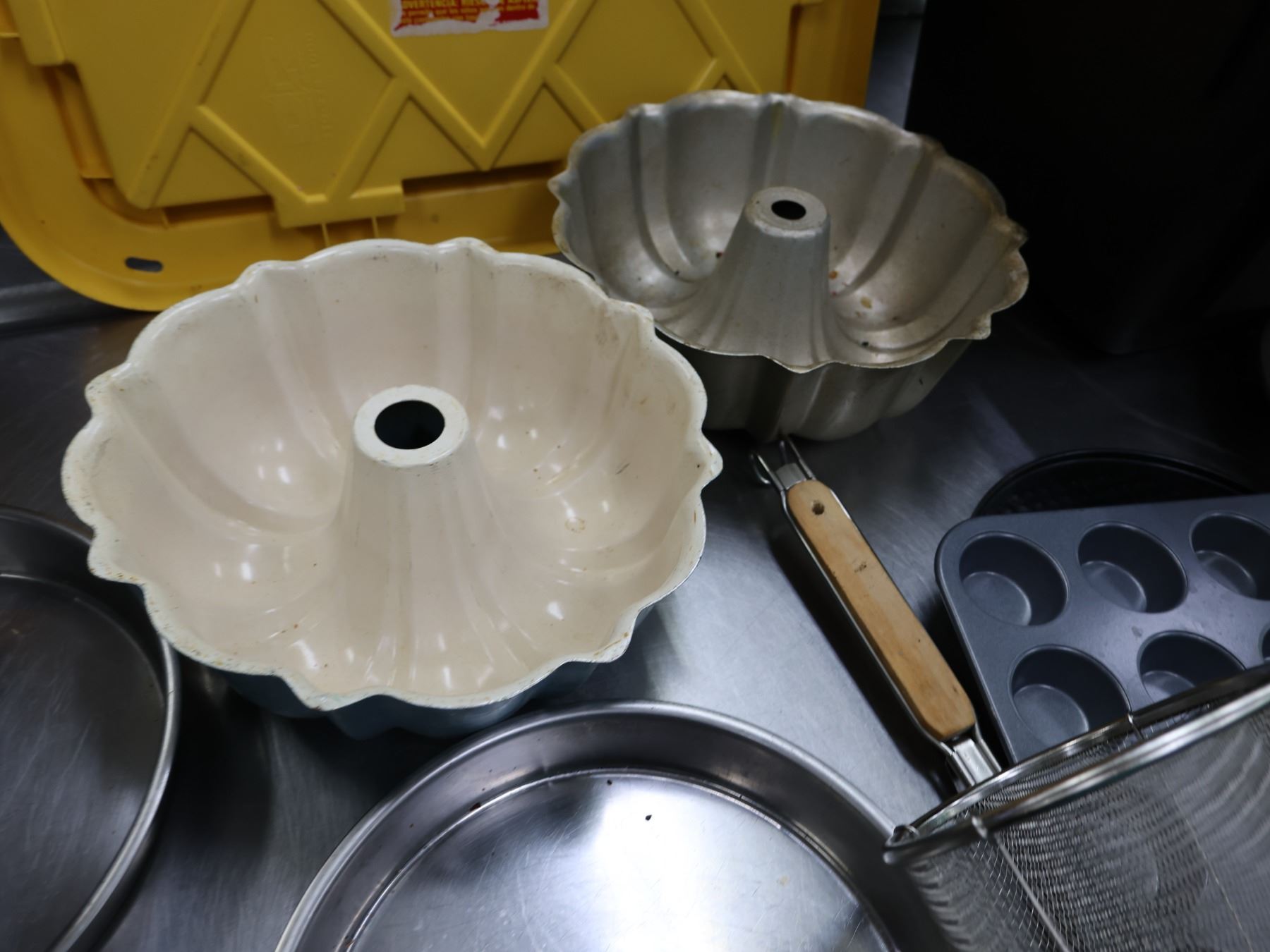 Multiple Plastic Bins, Muffin Tins, Bundt & Cake Pans, etc Misc Sizes.
