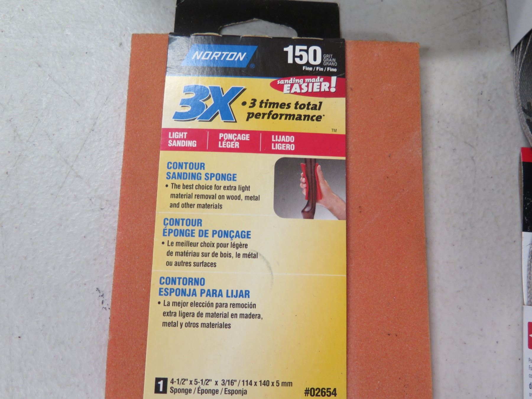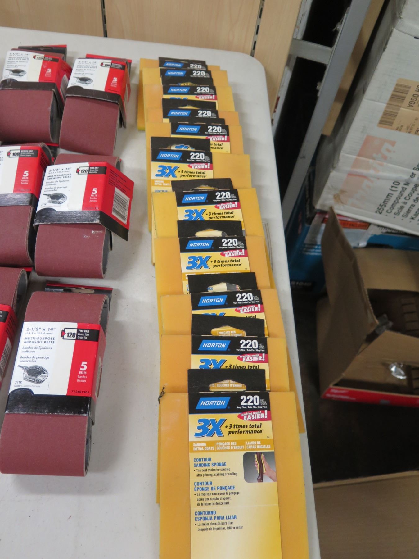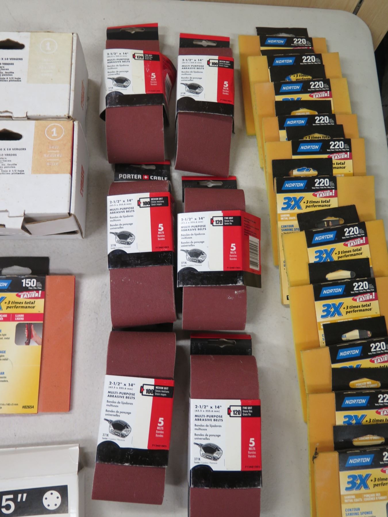 Multiple Porter Cable Abrasive Belts, Yard Stick Rolls, Norton Sandpaper, etc