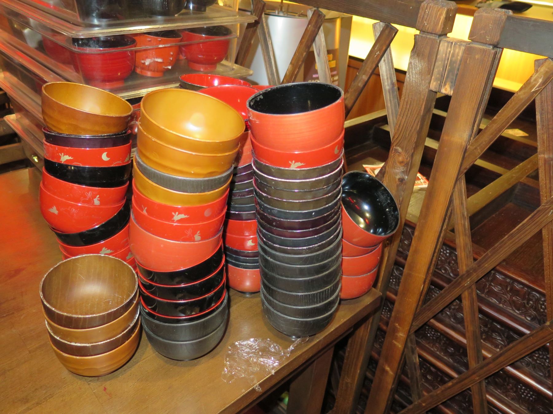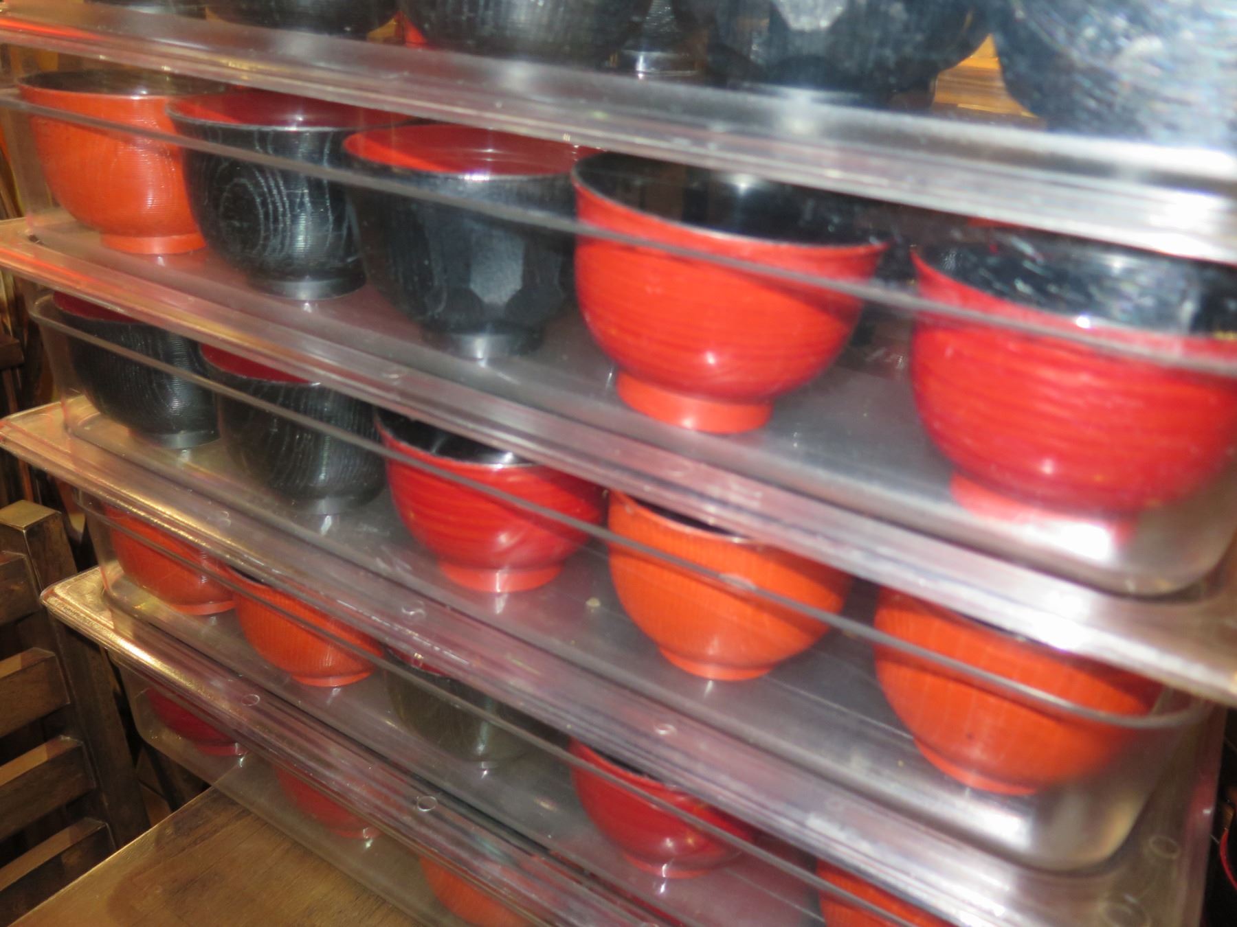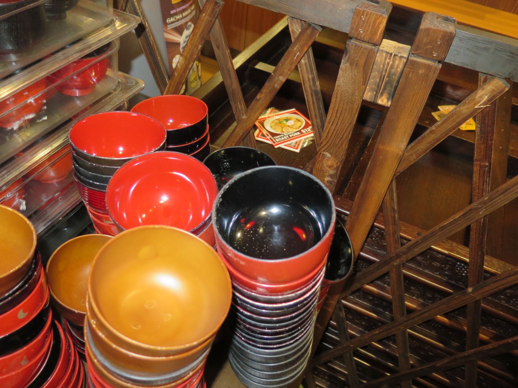 Multiple Red & Black Bowls w/ Some Storage Bins