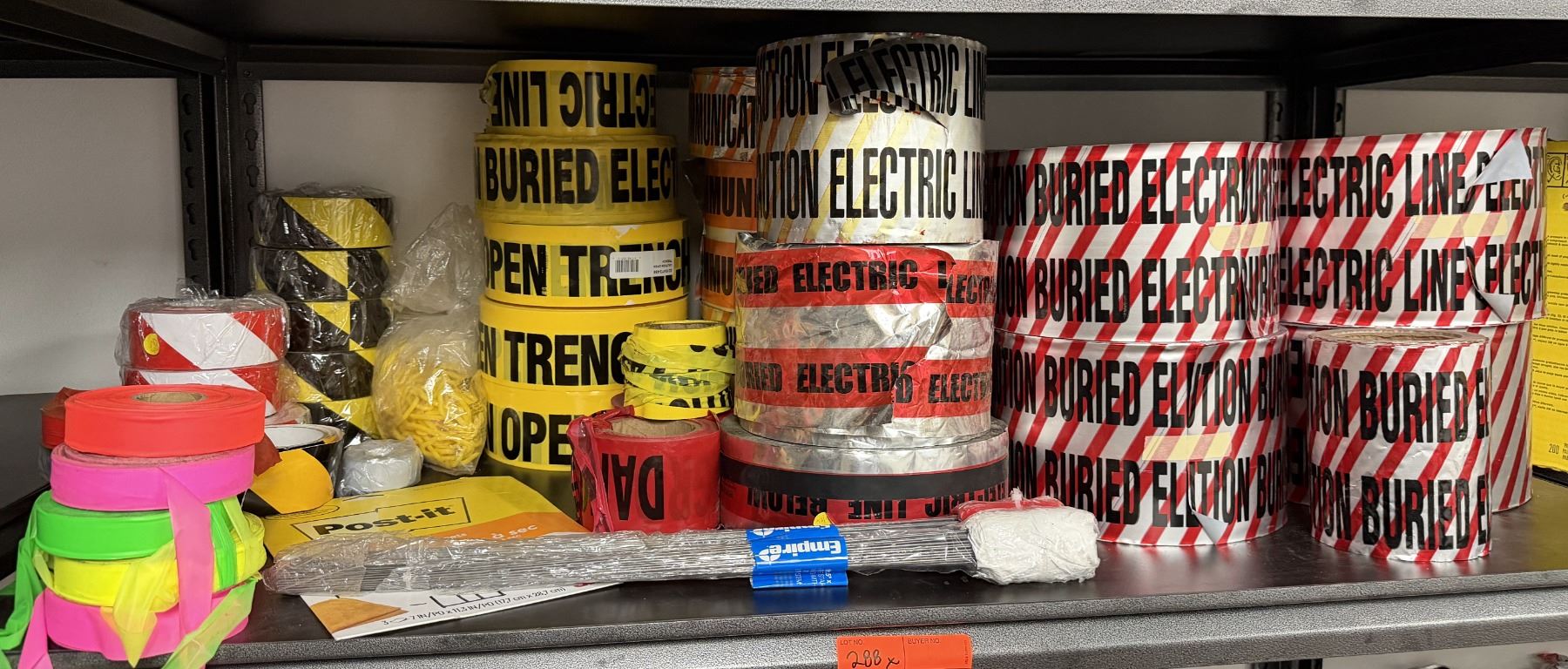 Multiple Rolls Caution Tape, Misc Messages: Open Trench, Buried Electric Lines, etc