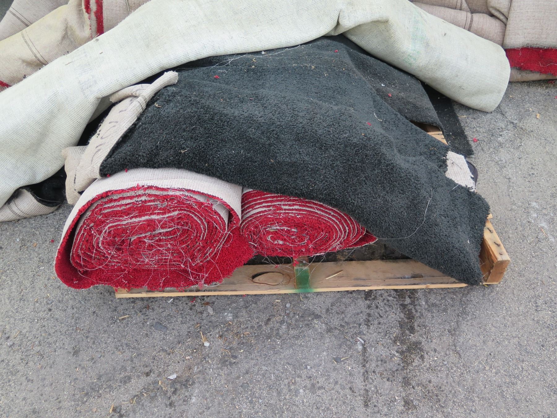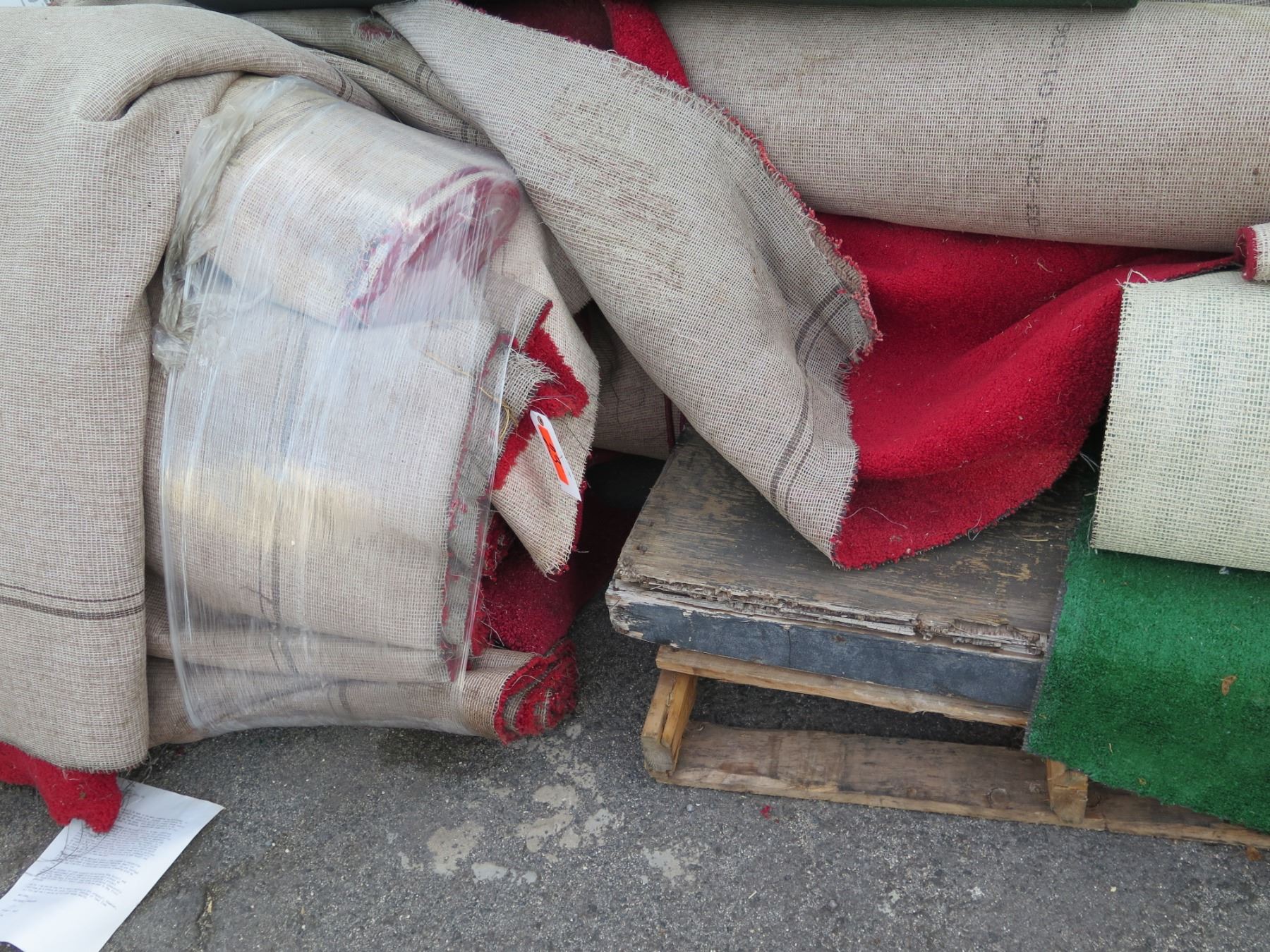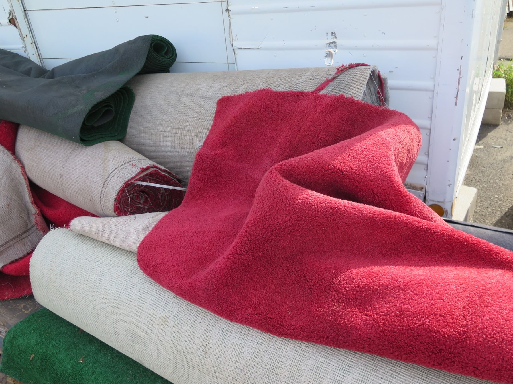 Multiple Rolls Red & Black Carpet, Green Astro-Turf Flooring, Carpet Mats, etc
